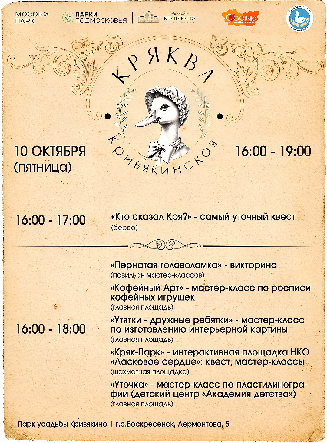 Уже сегодня в парке усадьбы Кривякино пройдёт семейный квест «В поисках уточек»