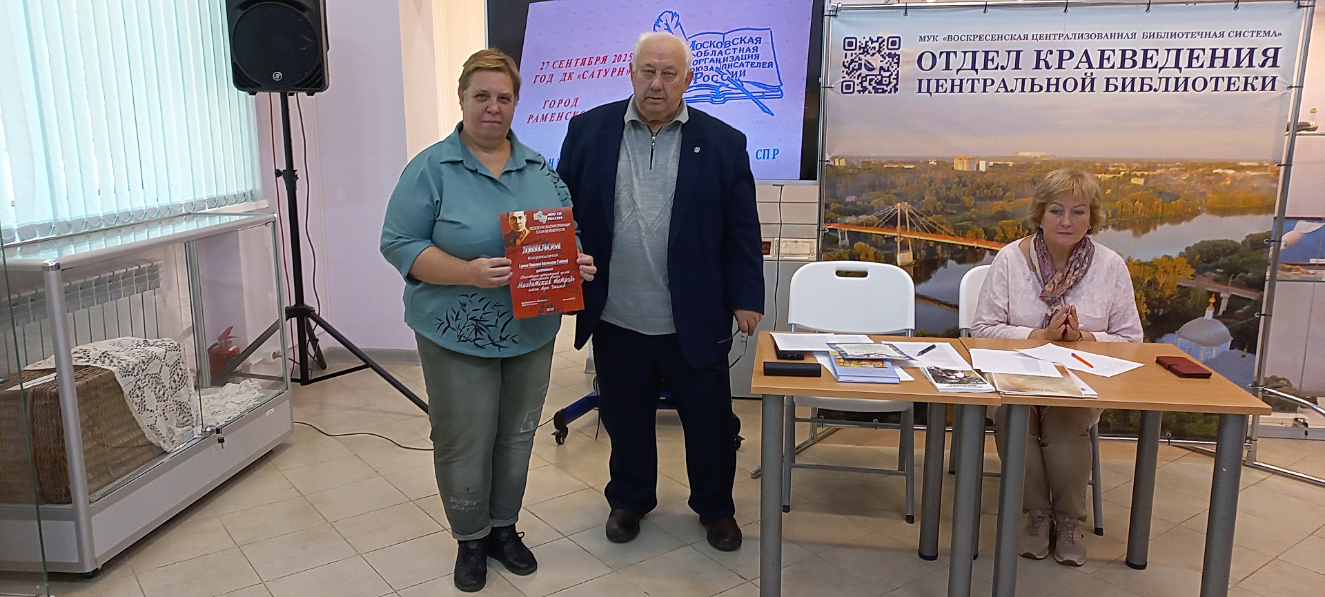 Руководитель Воскресенского литературного объединения «Радуга» им. И. И. Лажечникова, заместитель председателя правления Московской областной организации Союза писателей России Виктор Лысенков сделал обзор событий культурной жизни Подмосковья и городского округа Воскресенск за прошедший месяц и проинформировал о ближайших мероприятиях.
