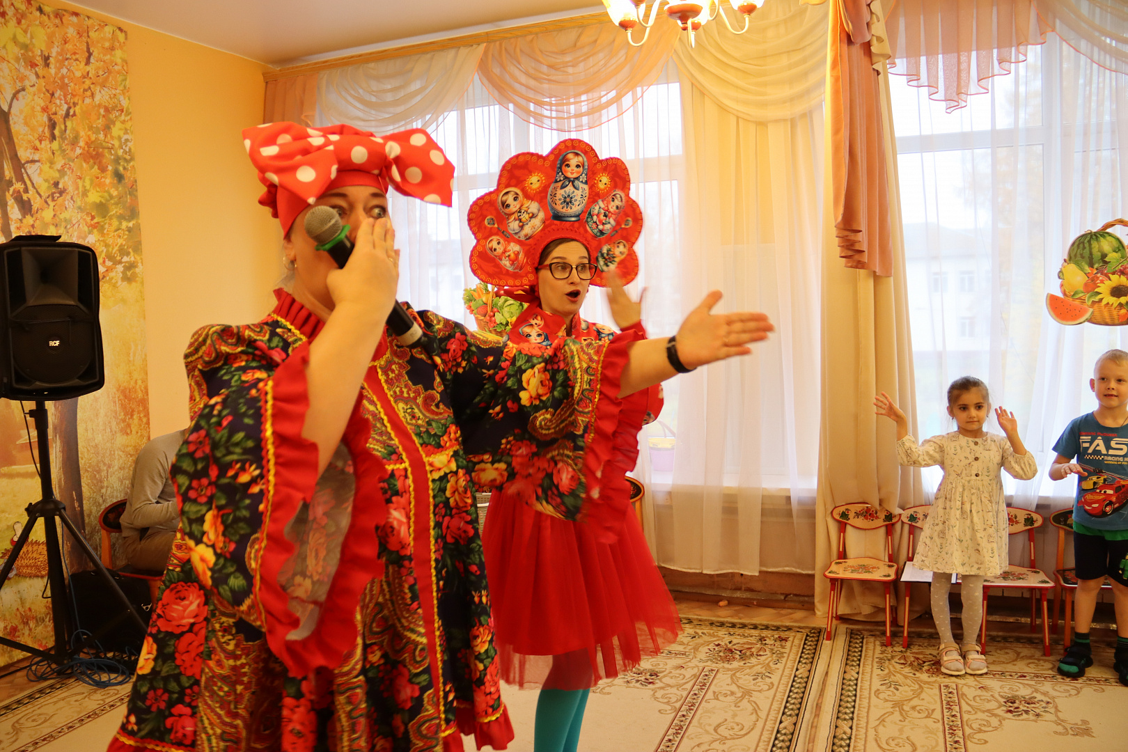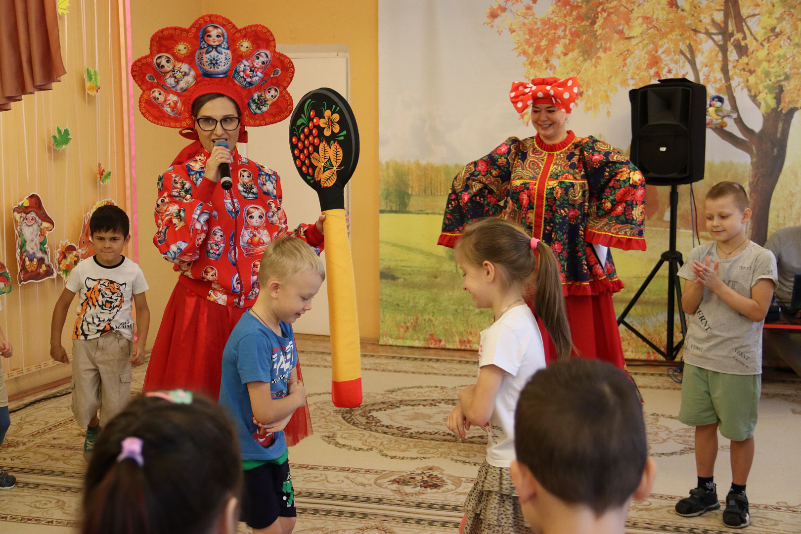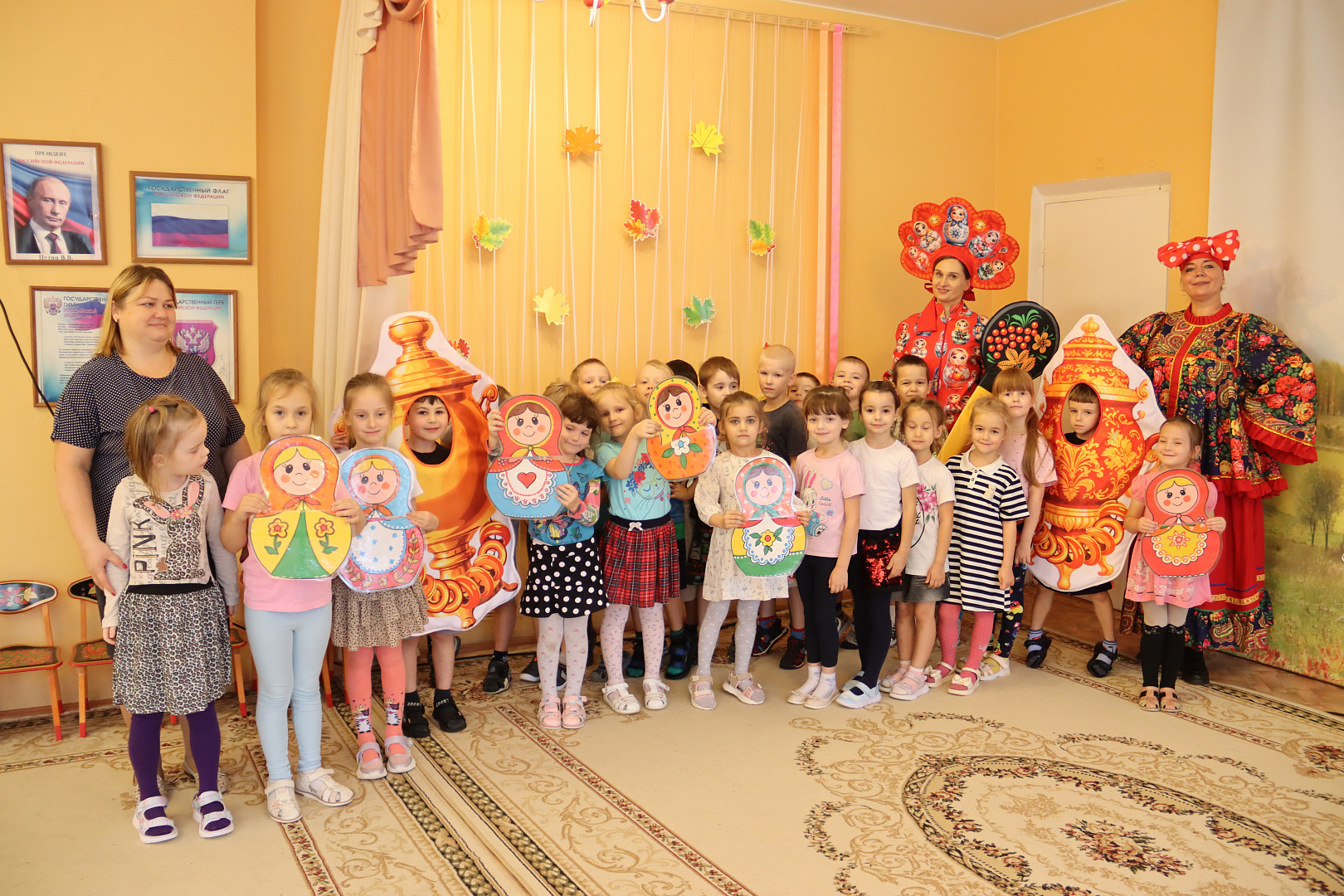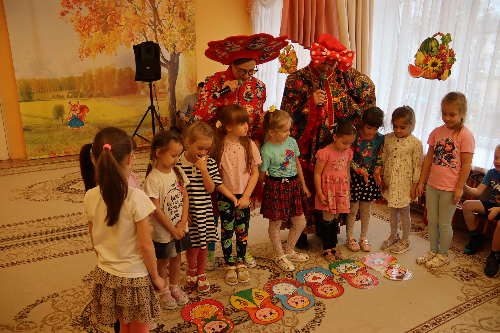 Глаша и Матрёна рассказали детям откуда появилась Матрёшка, из какой древесины её изготавливают, какие узоры украшают сарафаны русских красавиц. Вместе с матрёшками дети танцевали, водили хороводы, играли и веселились, знакомясь с историей исконно русской народной игрушки, традициями и обычаями русского народа.