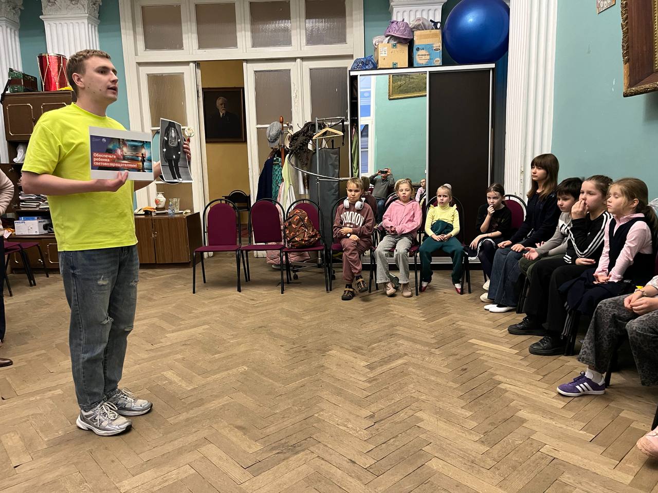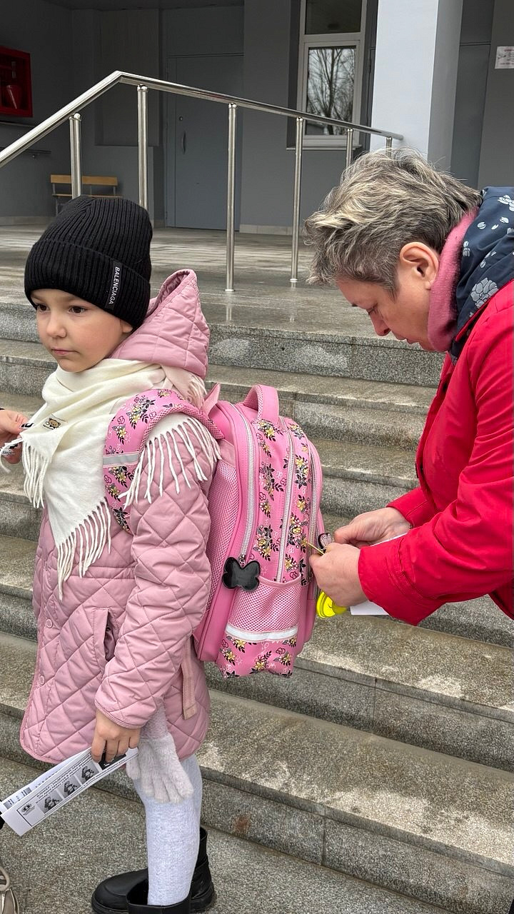Сотрудники ЦКиД «Москворецкий» раздали родителям участников творческих коллективов световозвращающие элементы, рассказали о необходимости их ношения в тёмное время суток, показали, как правильно крепить фликеры на одежду ребёнка.