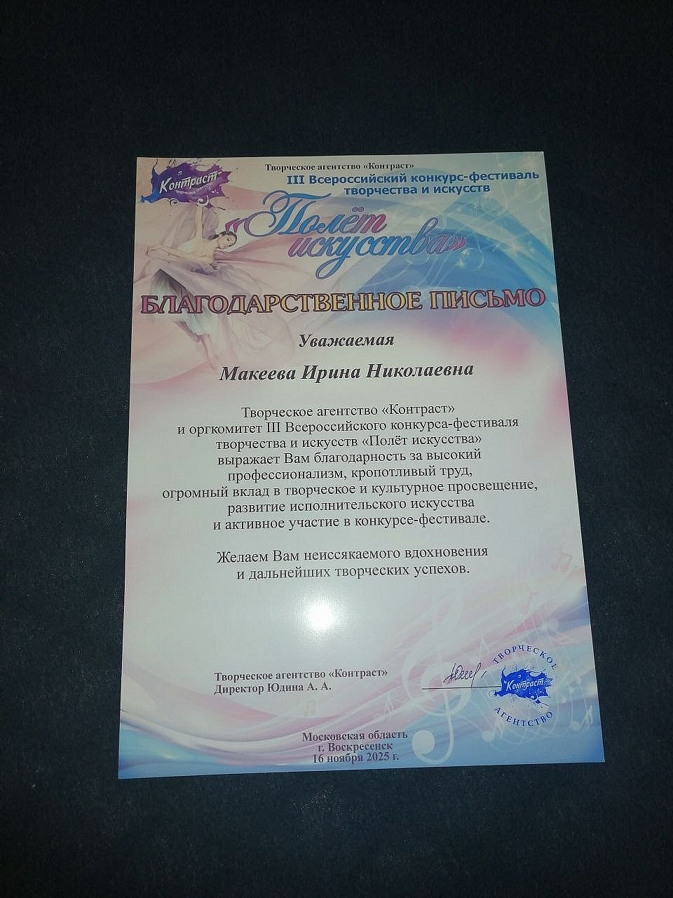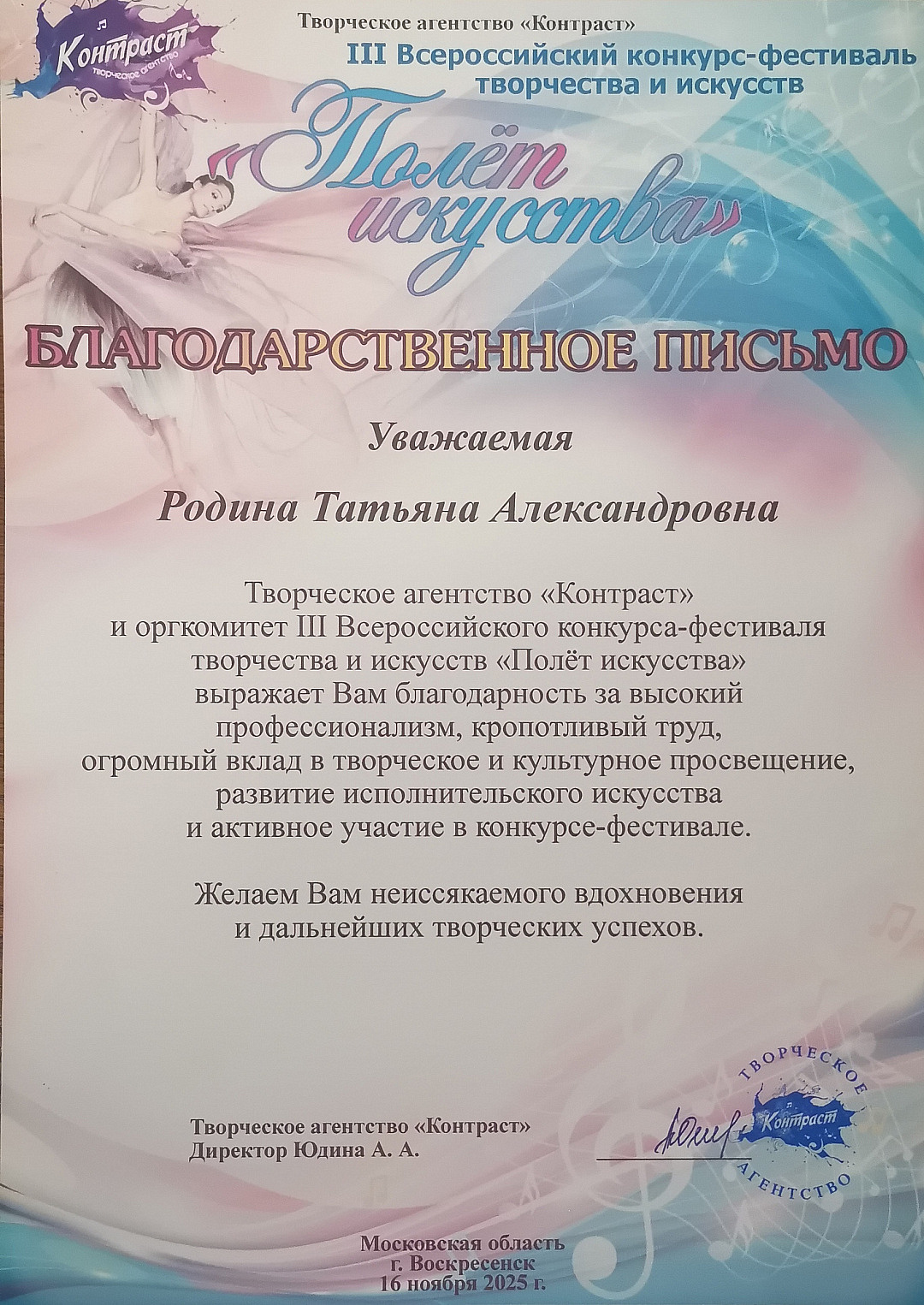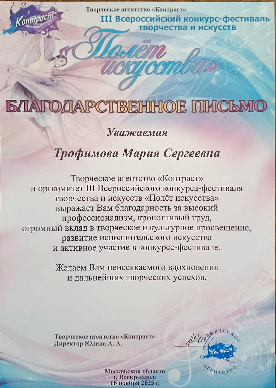 Воскресенские таланты успешно выступили на конкурсе-фестивале «Полет искусства»