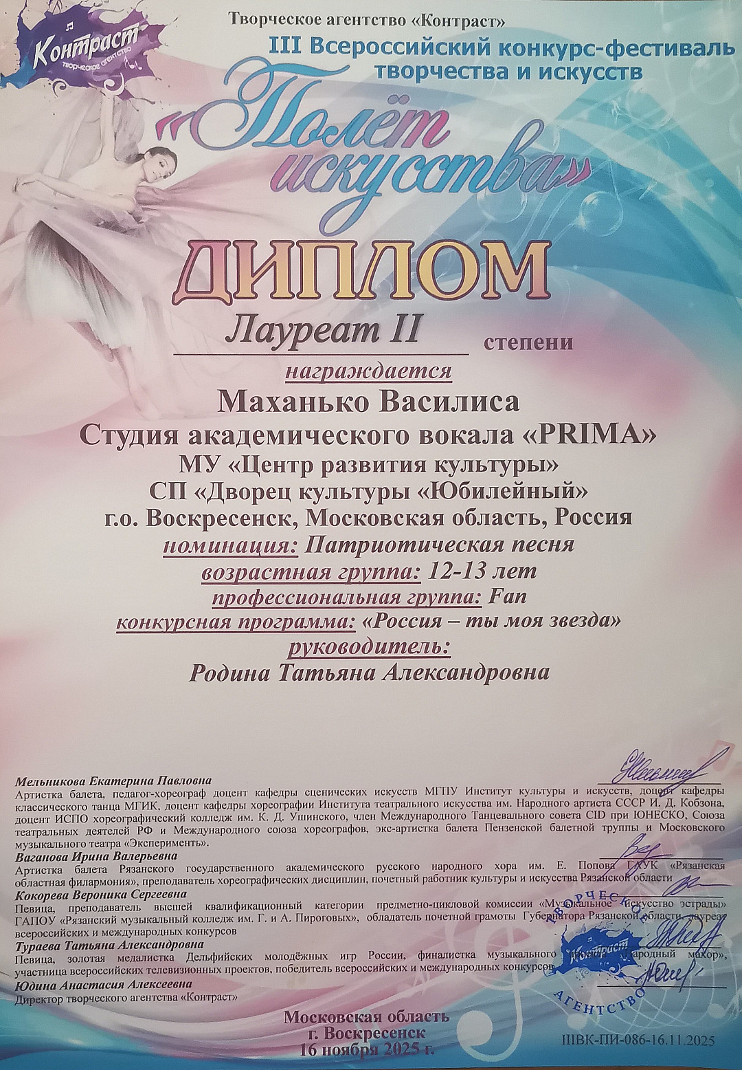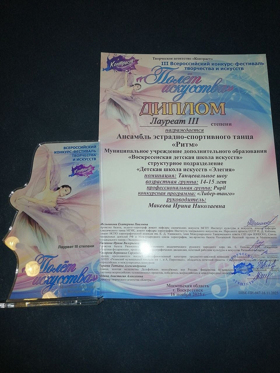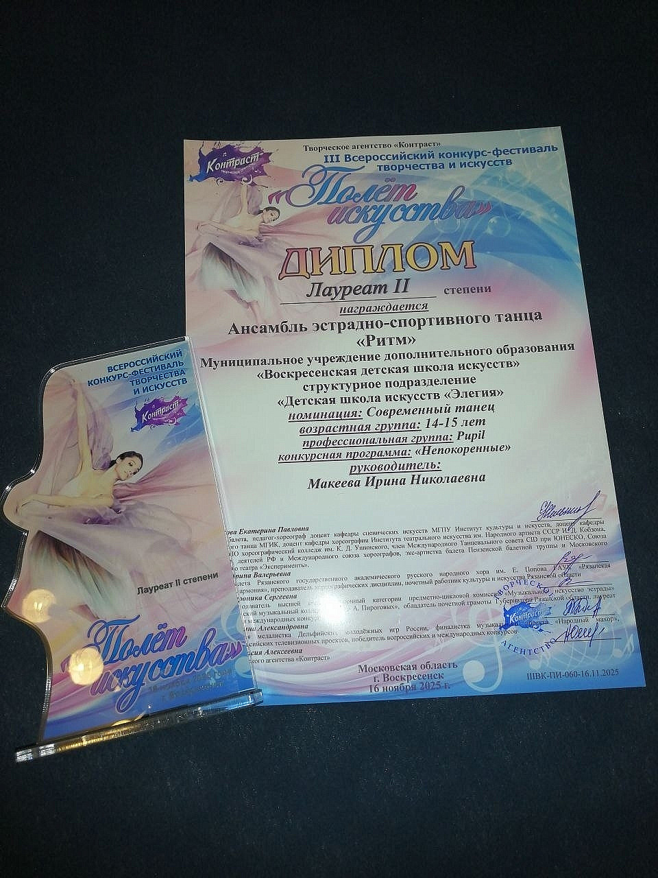 Танцоры под руководством Ирины Николаевны Макеевой стали дважды Лауреатами 2 степени и дважды Лауреатами 3 степени, представив на конкурс две ансамблевые композиции и сольные номера в исполнении Мозиной Виктории и Терентьевой Александры.