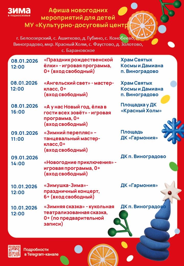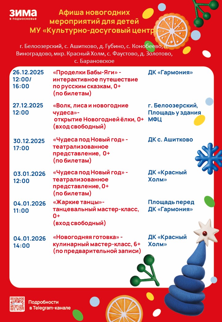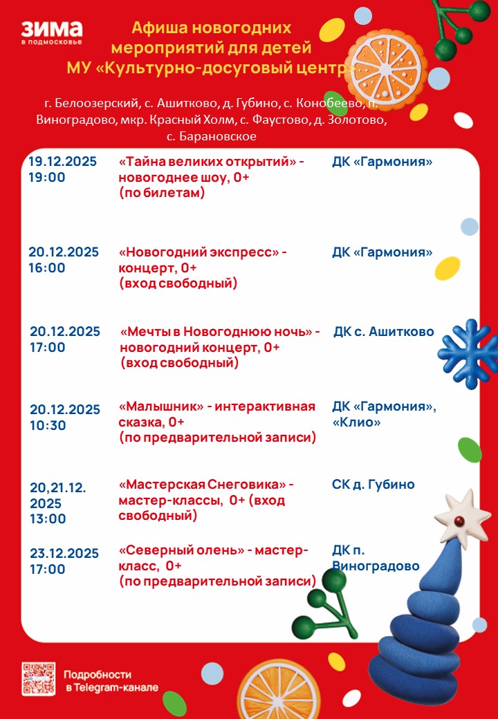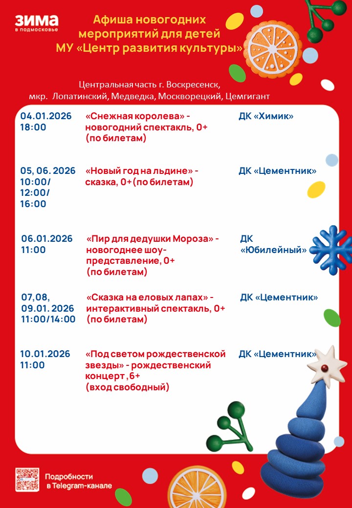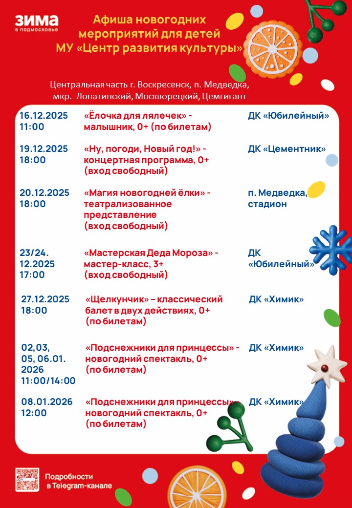 Учреждения культуры городского округа Воскресенск приглашают всех на новогодние мероприятия для детей.