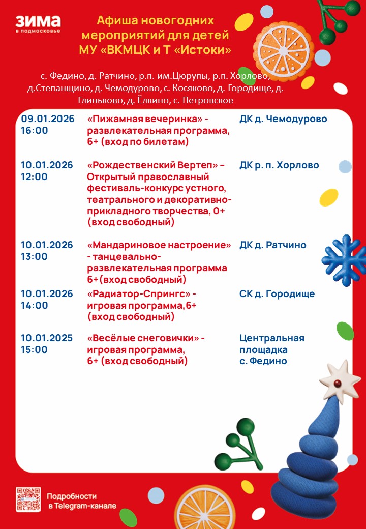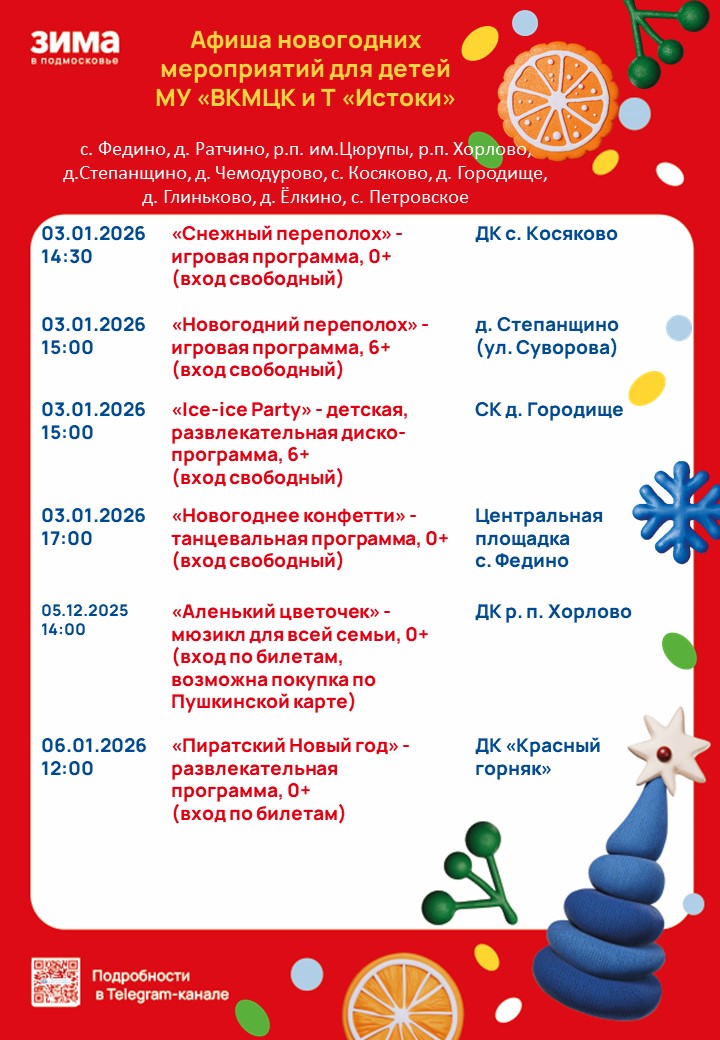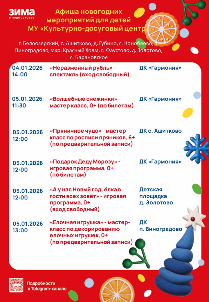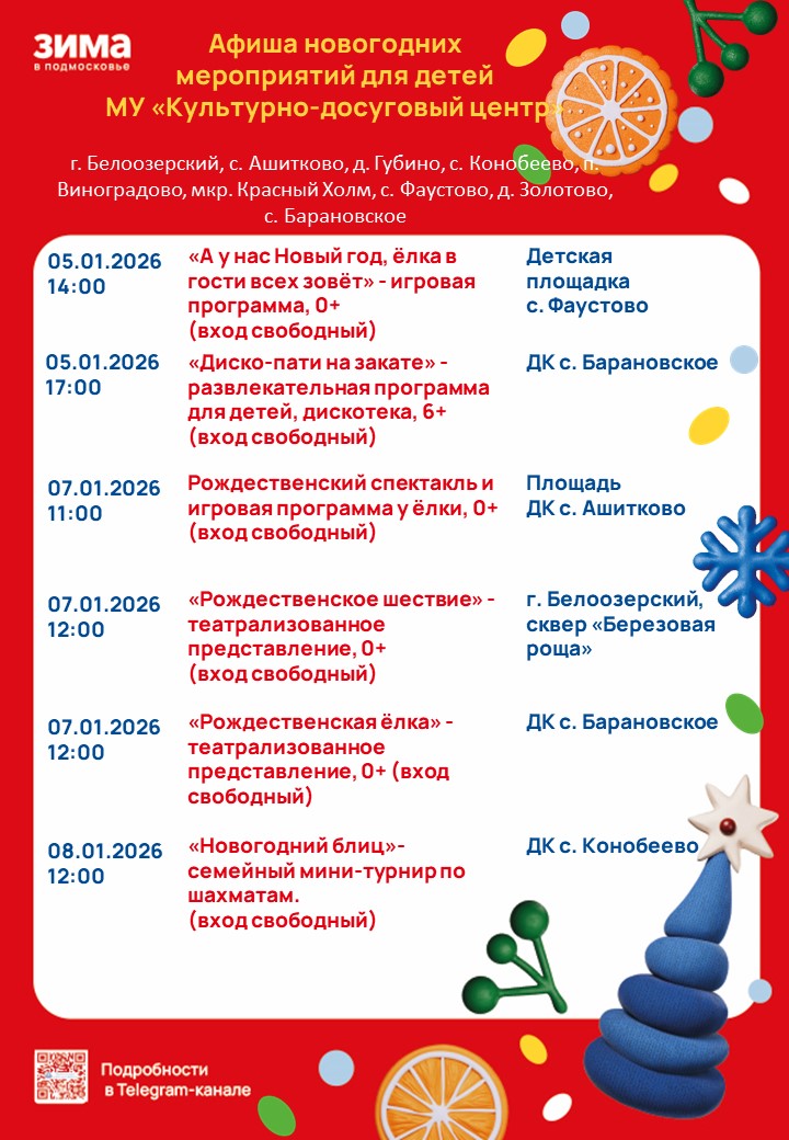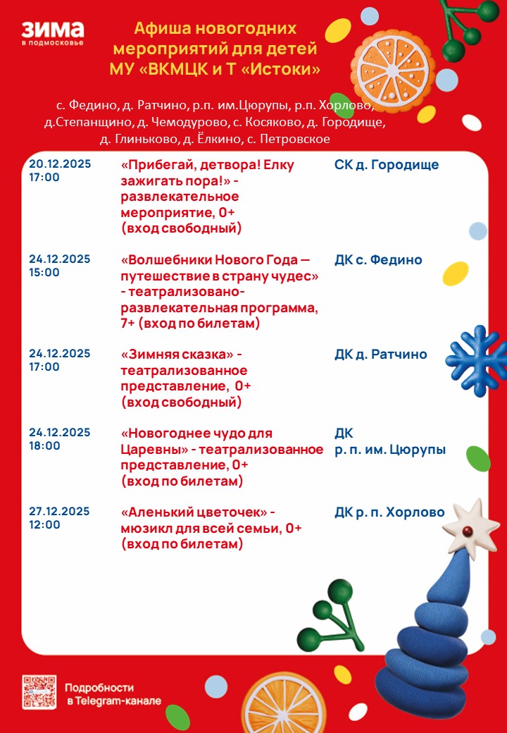 Учреждения культуры городского округа Воскресенск приглашают всех на новогодние мероприятия для детей.