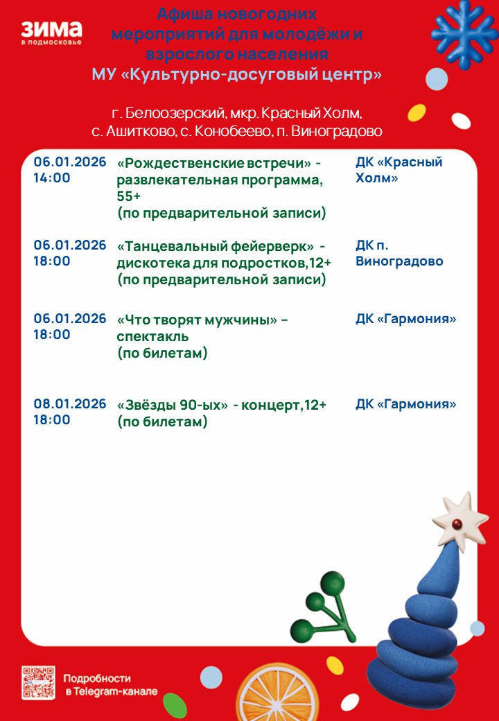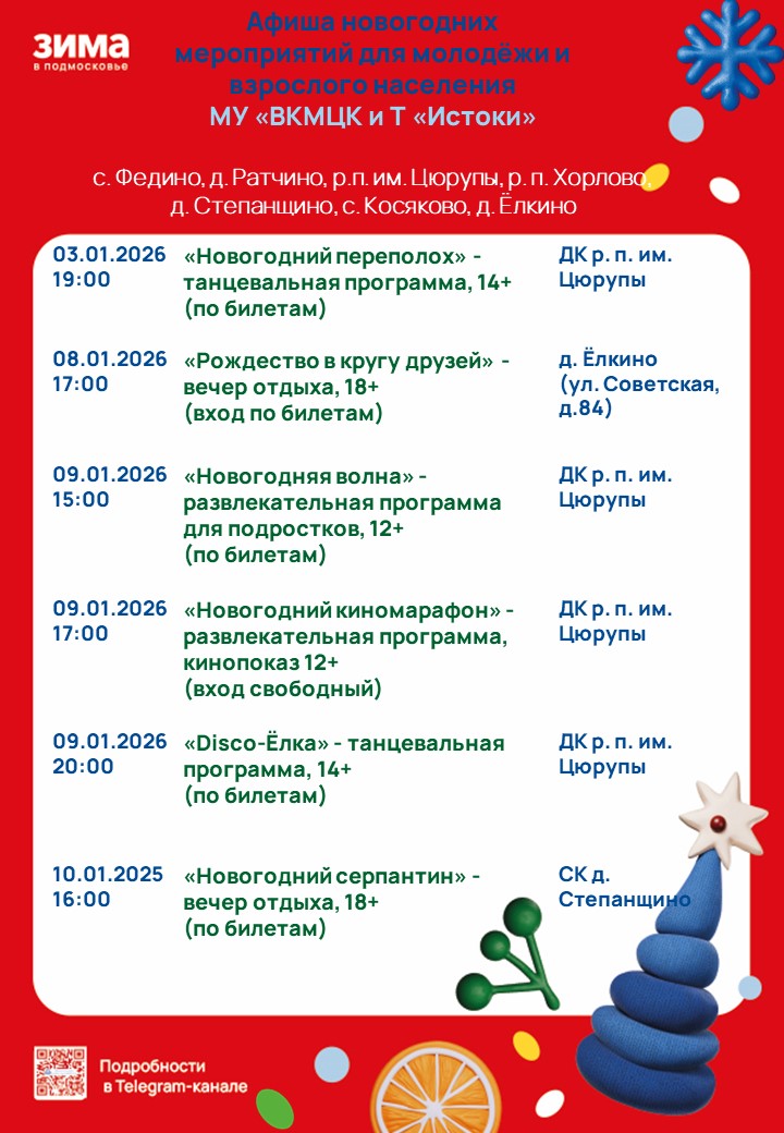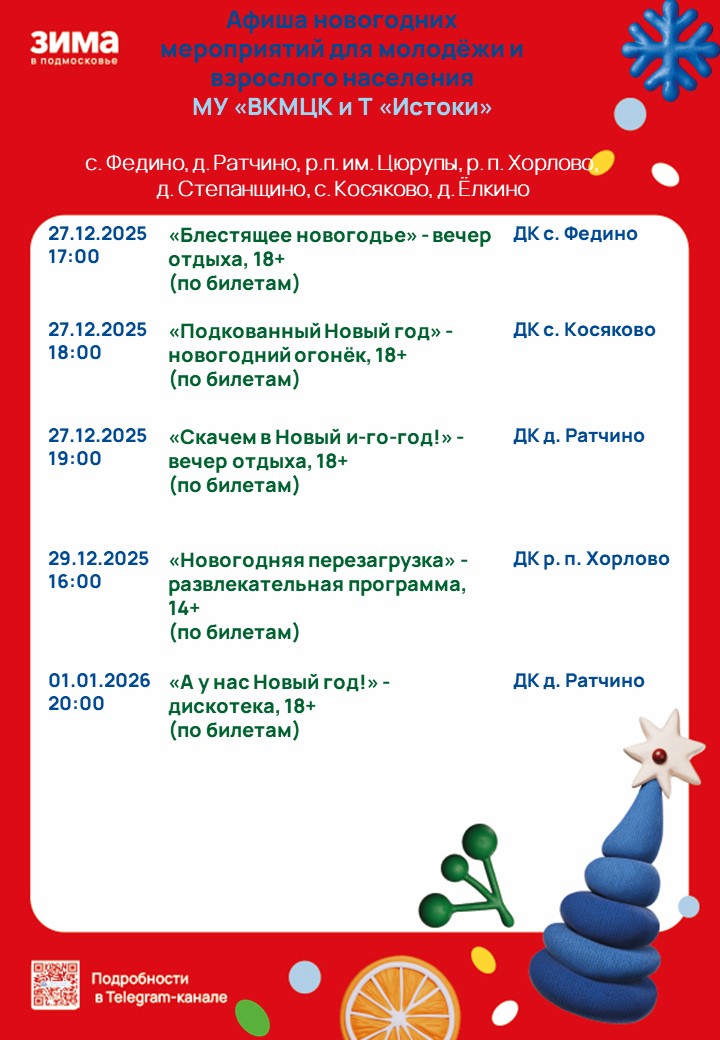 Афиша новогодних мероприятий для молодёжи и взрослого населения
