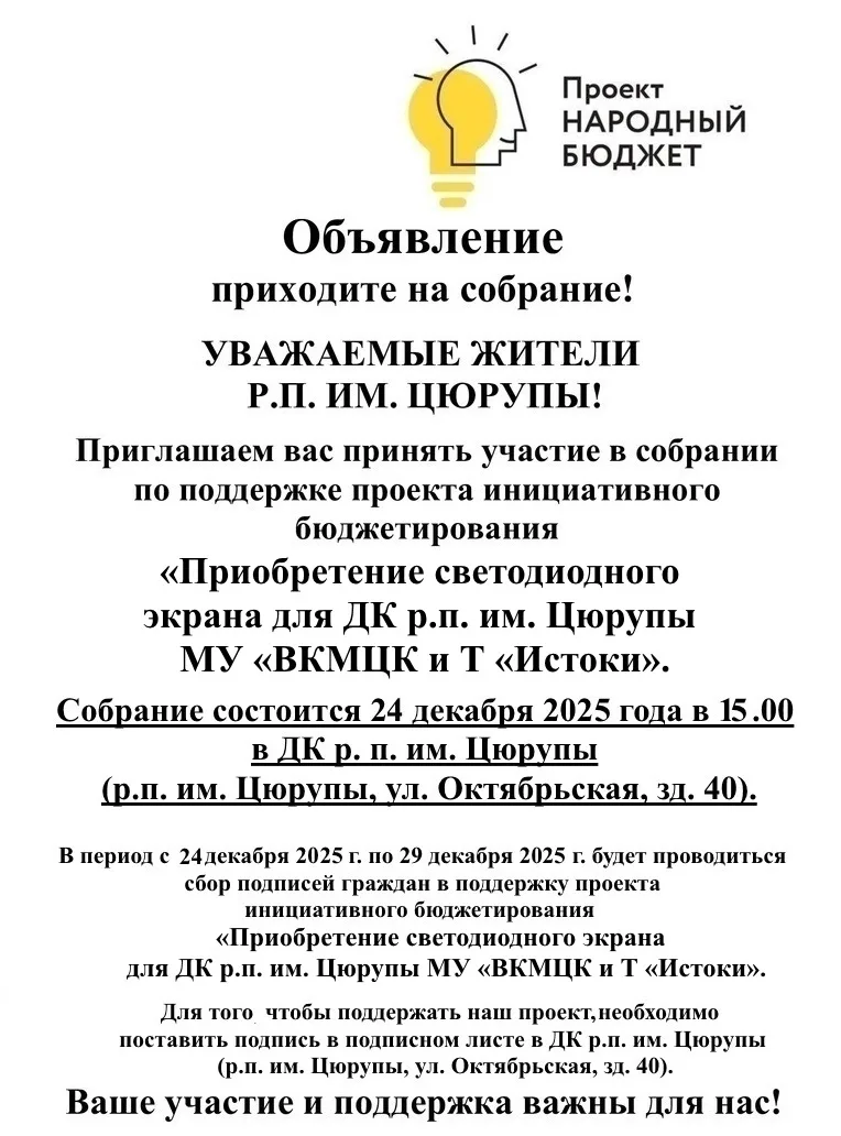 Приглашаем вас принять участие в собраниях по поддержке проектов инициативного бюджетирования.