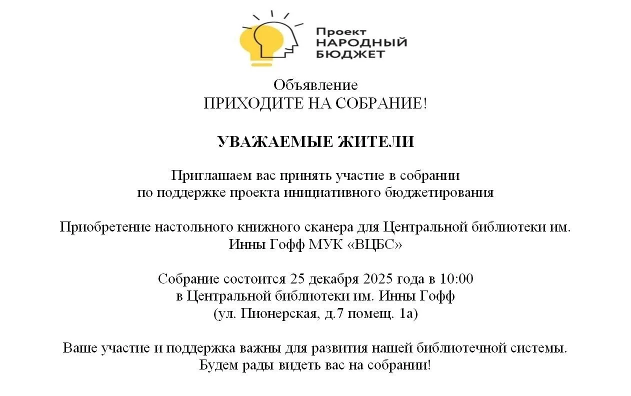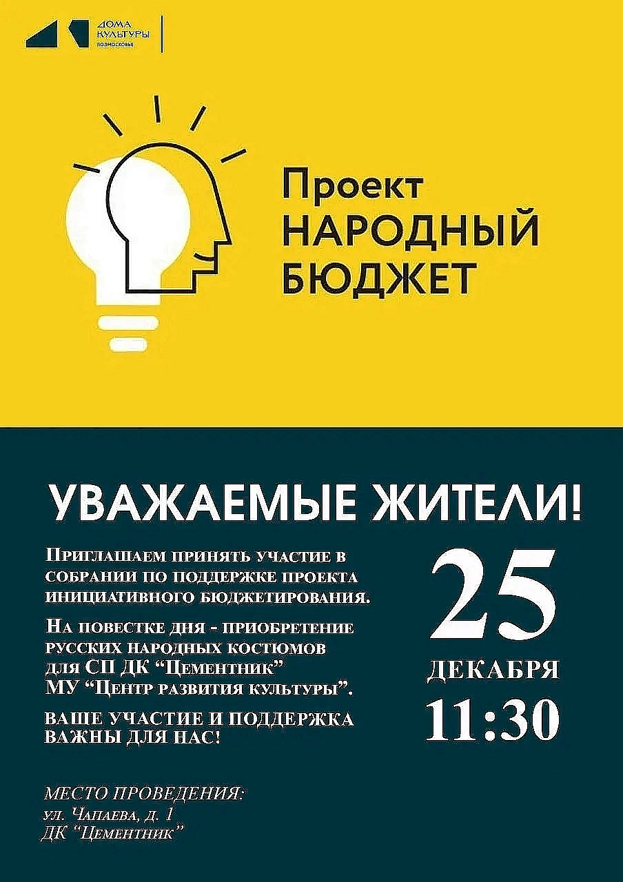 Приглашаем жителей принять участие в собраниях по поддержке проектов инициативного бюджетирования учреждений культуры
