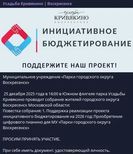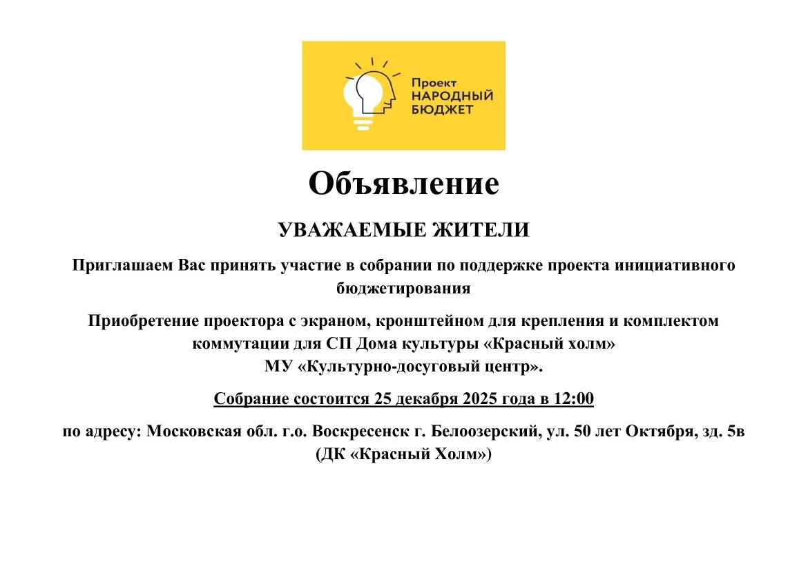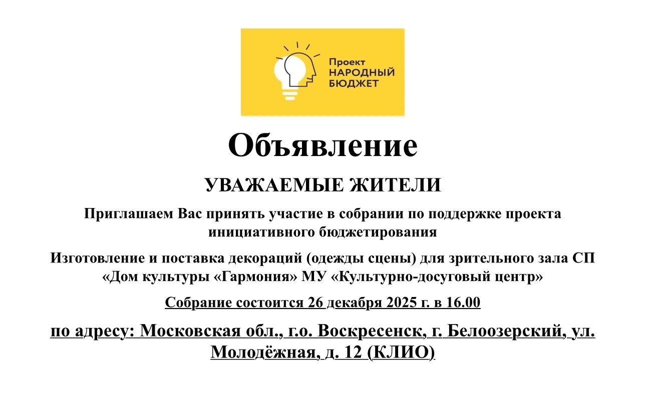 Напоминаем, что муниципальные учреждения Управления культуры городского округа Воскресенск в 2026 году принимают участие в конкурсном отборе проектов инициативного бюджетирования в Московской области.