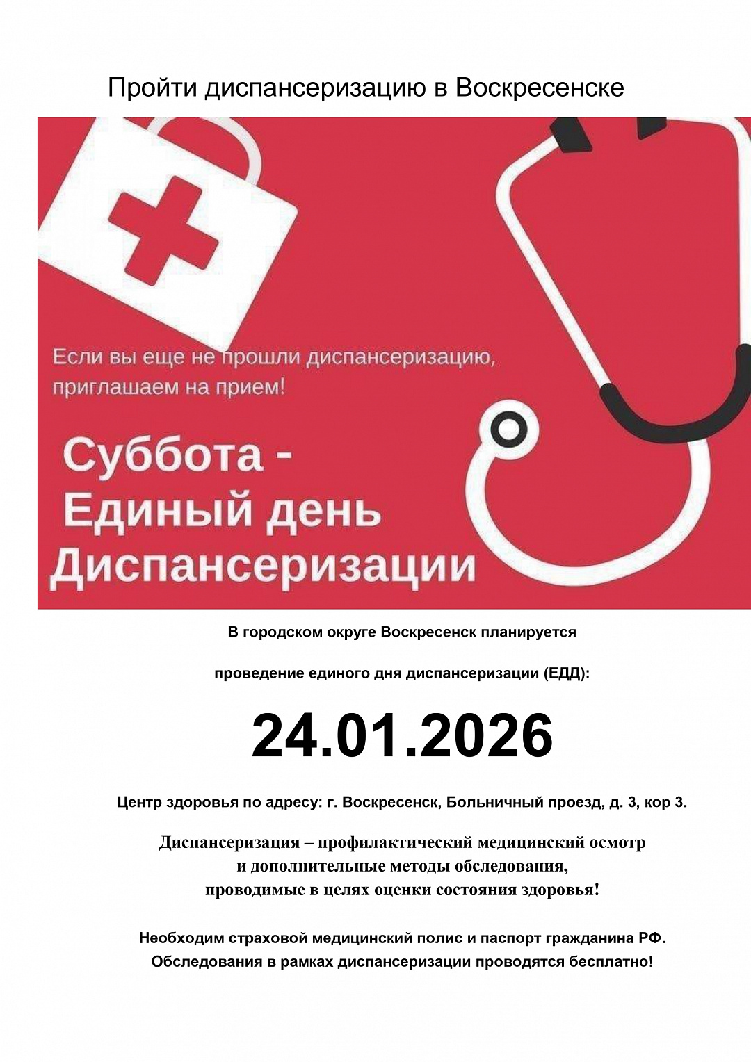 Завтра в Воскресенске пройдет Единый день диспансеризации 23.01.2026