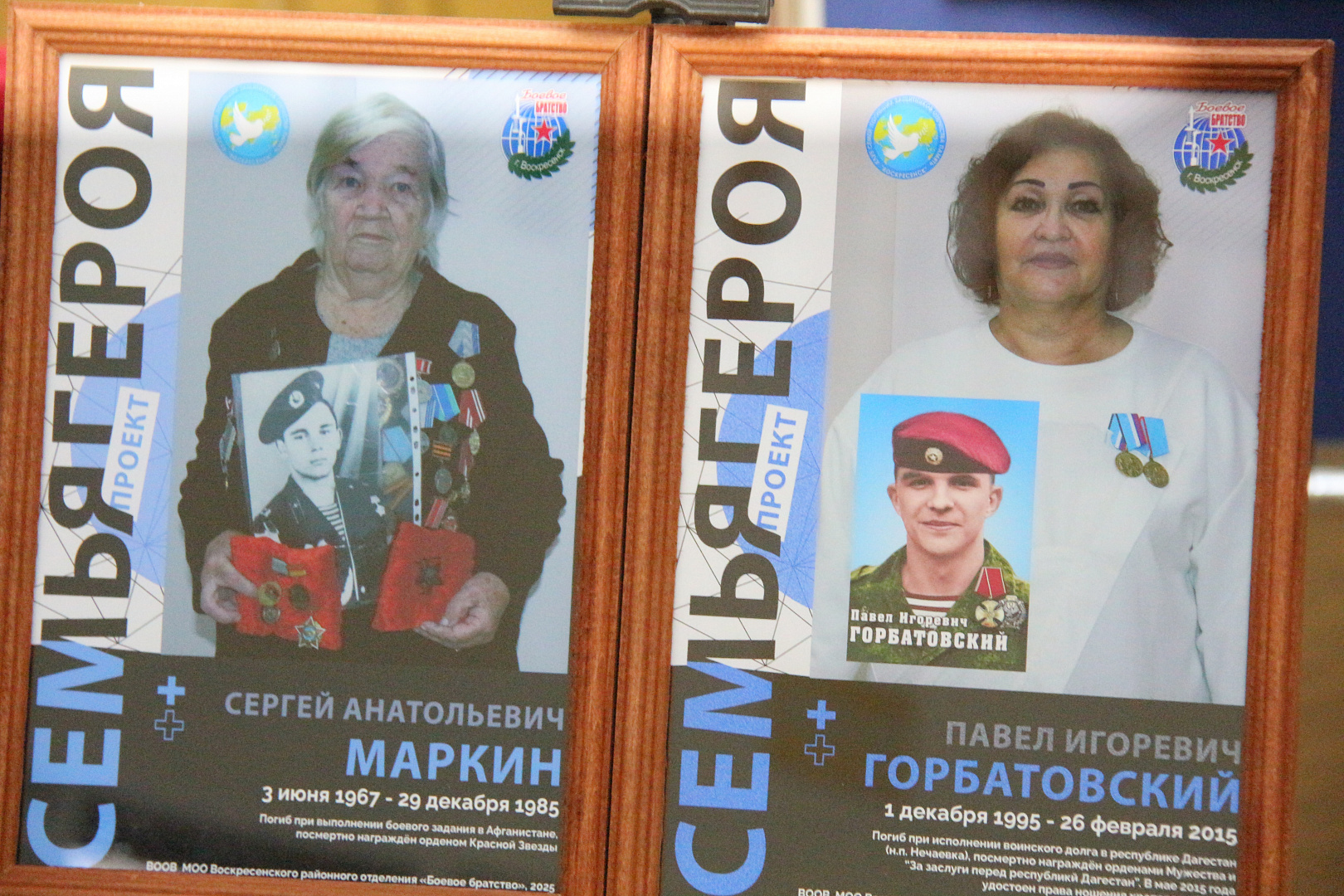 Экспозиция — это дань уважения нашим соотечественникам, которые с честью выполнили свой воинский долг. За каждым портретом — судьбы воскресенских матерей, жён, дочерей и отцов, которые так и не дождались своих близких из горячих точек, включая специальную военную операцию.