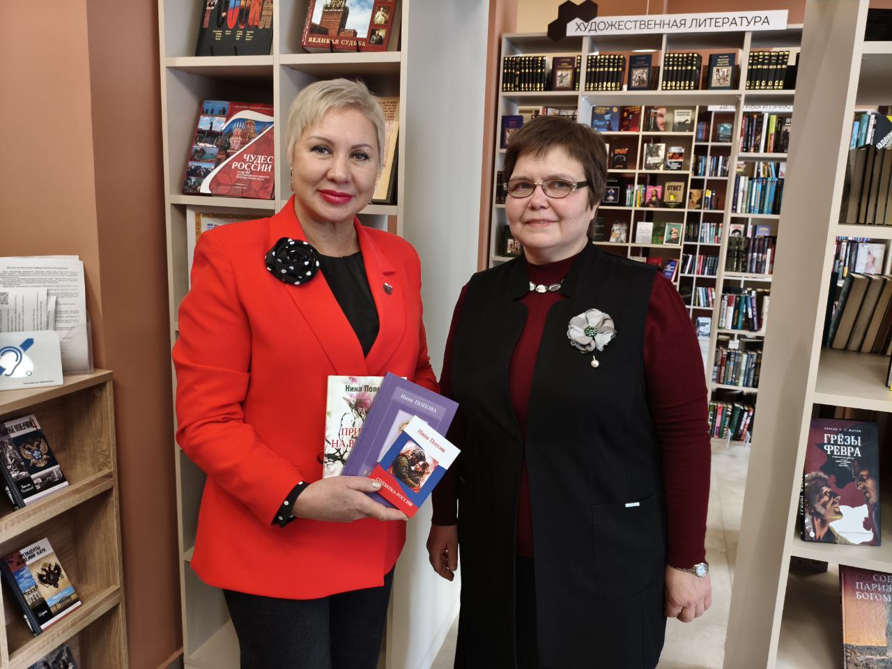 Гости поблагодарили сотрудников Центральной библиотеки имени Гофф за теплый прием. Нина Викторовна преподнесла в дар свои произведения, в том числе книгу «Присягая на верность весне», удостоенную Всероссийской премии «Лучшая поэтическая книга 2025 года».
