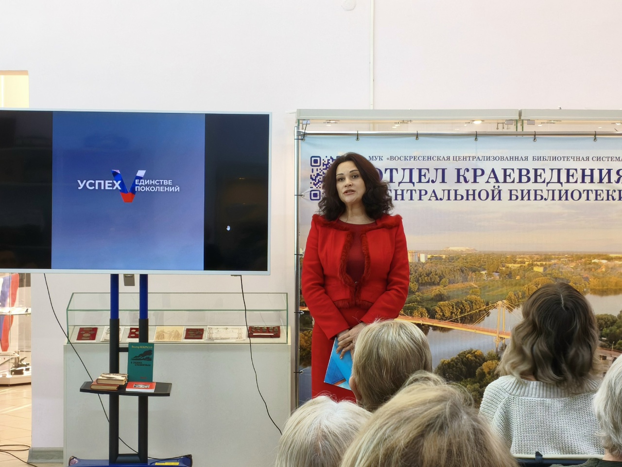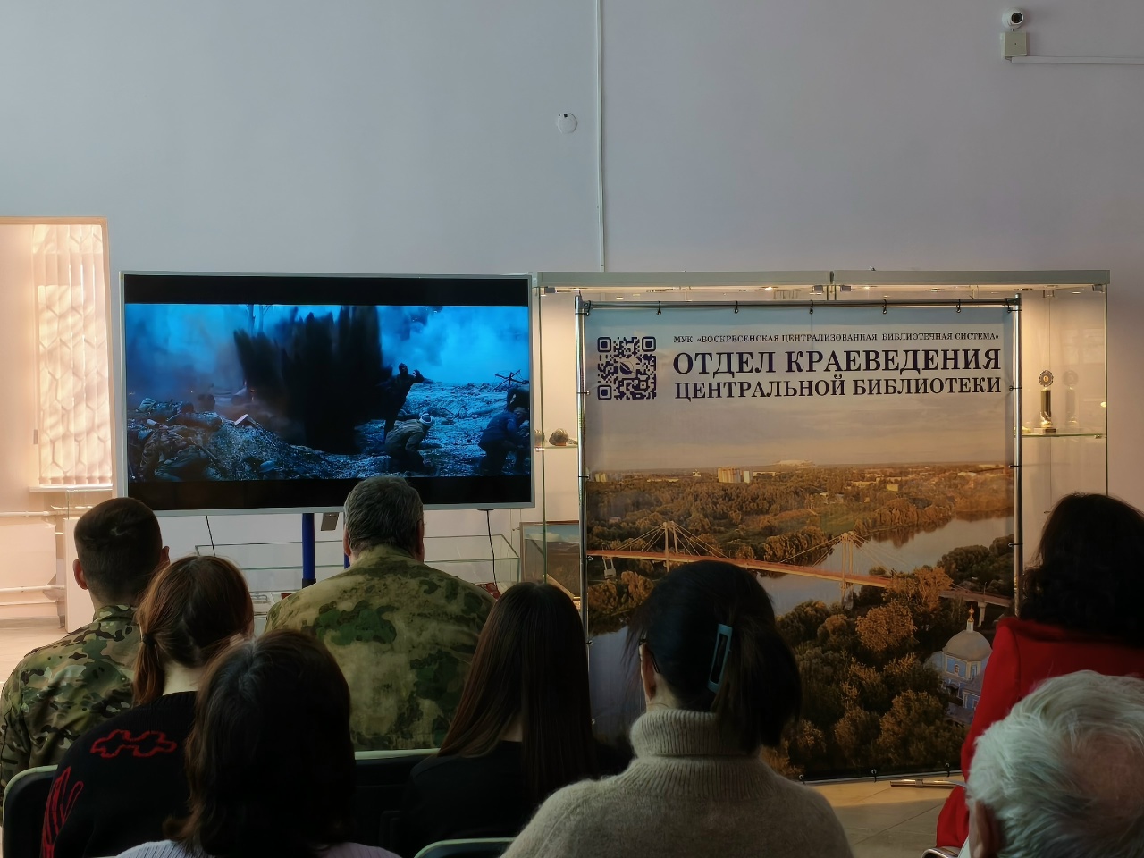 Заведующая отделом краеведения Центральной библиотеки им. Инны Гофф Елена Юрова рассказала о воскресенцах - участниках Сталинградской битвы и продемонстрировала видеоролик - песню "В парке у Мамаева кургана", слова которой были написаны на воскресенской земле Инной Анатольевной Гофф (музыка Яна Френкеля).
