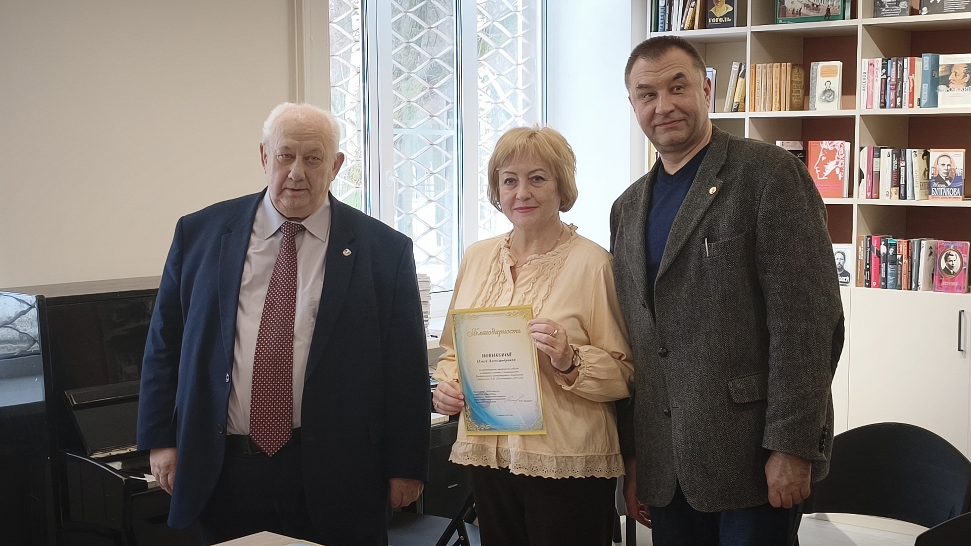 Сергей Сергеевич вручил Благодарность Всероссийской литературной премии «Щедрое слово» им. М.Е. Салтыкова-Щедрина члену Оргкомитета премии Виктору Лысенкову; Грамоту Московской губернской универсальной библиотеки Марине Горидько – участнице конкурса на соискание областной литературной премии им. М.М. Пришвина 2025 года; Благодарность инициатору прошедшего в январе в Воскресенске «Турнира стихоборцев» – Милане Зарубиной.