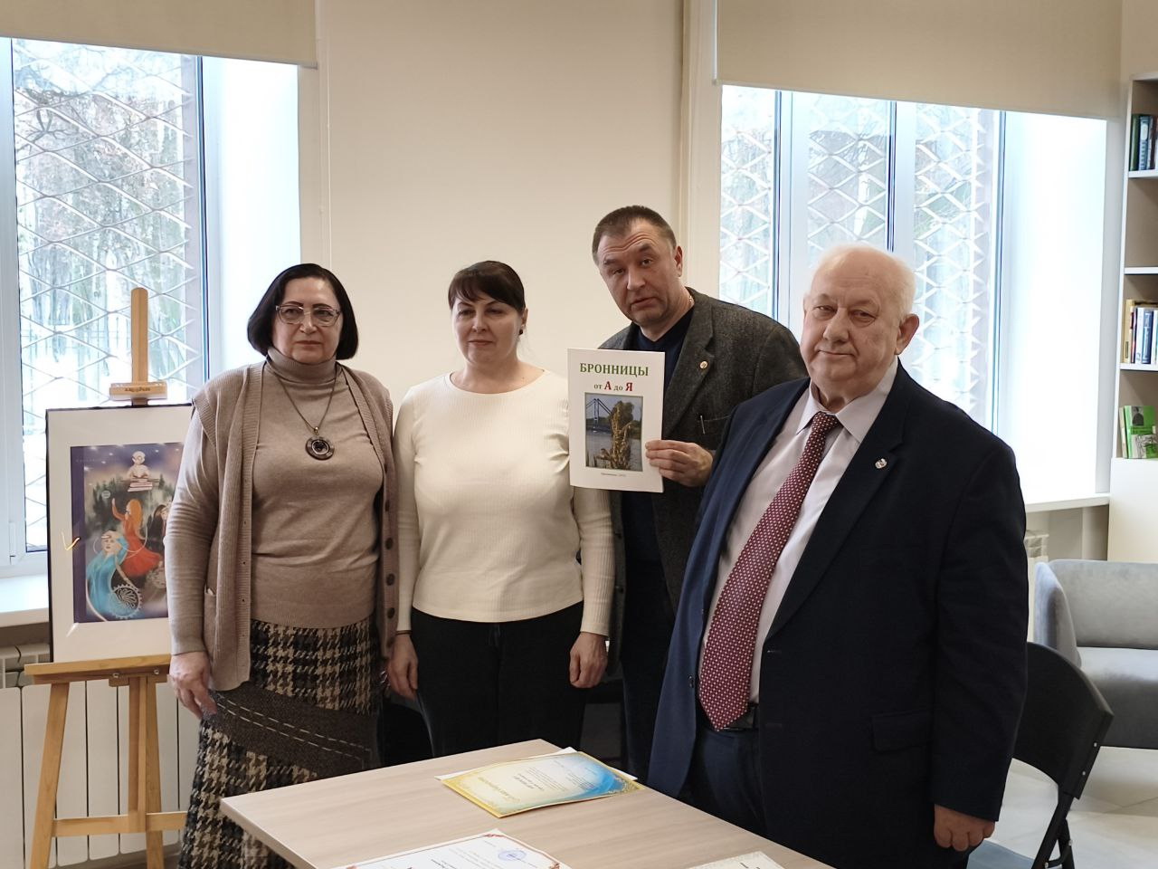 Виктор Лысенков вручил благодарности ЛИТО «Радуга» им. И.И. Лажечникова Сергею Антипову и активным членам литературного объединения, а также передал в дар Центральной библиотеке книгу «Бронницы от А до Я».