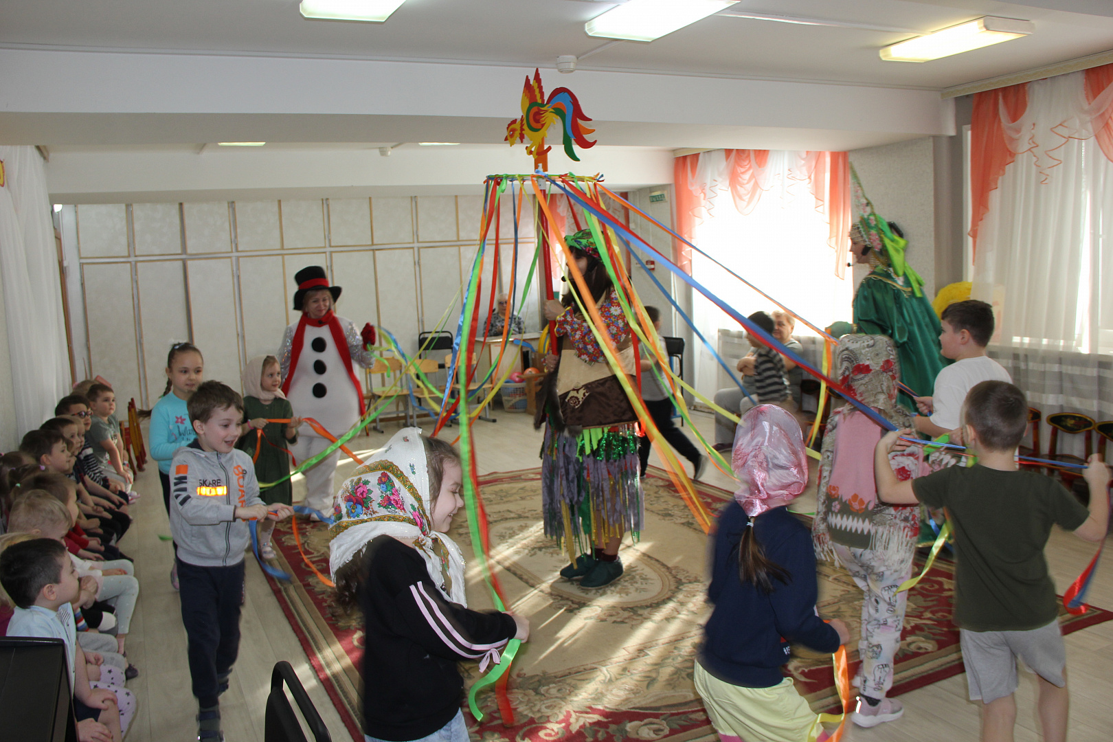 К концу мероприятия в гости пришла Весна – самая подходящая кандидатура на должность управления природой и покатала всех ребят на масленичной карусели.