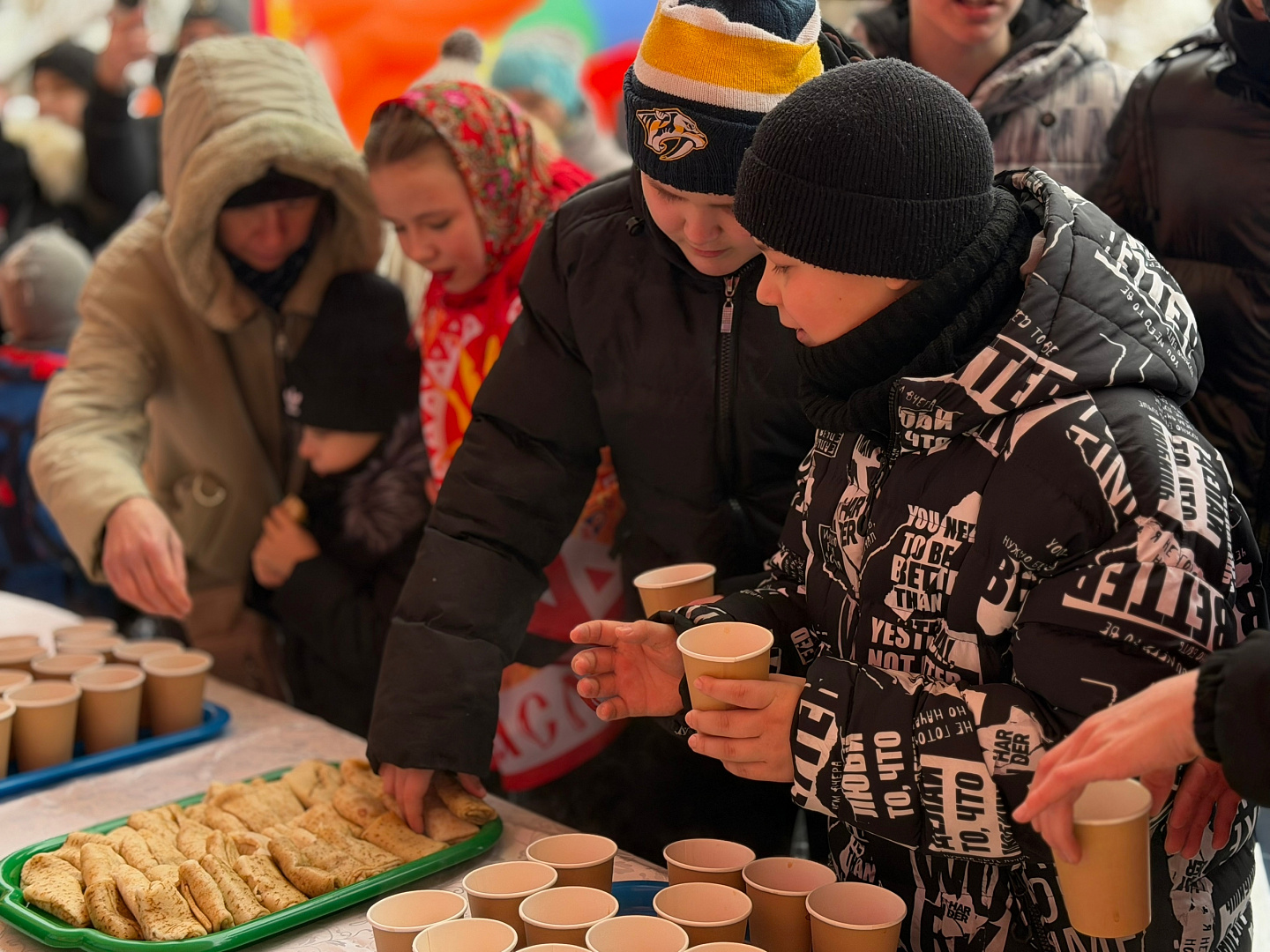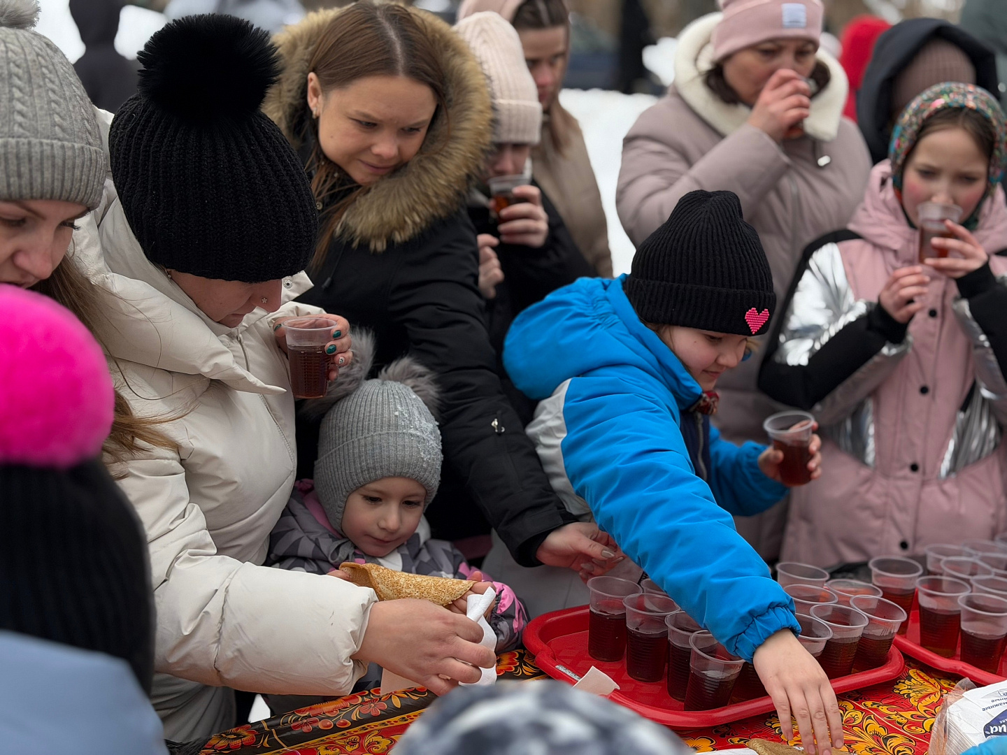 По традиции на всех площадках, собравшихся ждало прекрасное угощение – чай с золотистыми блинами, символизирующие солнце, которое с приходом весны будет становиться ярче и теплее.