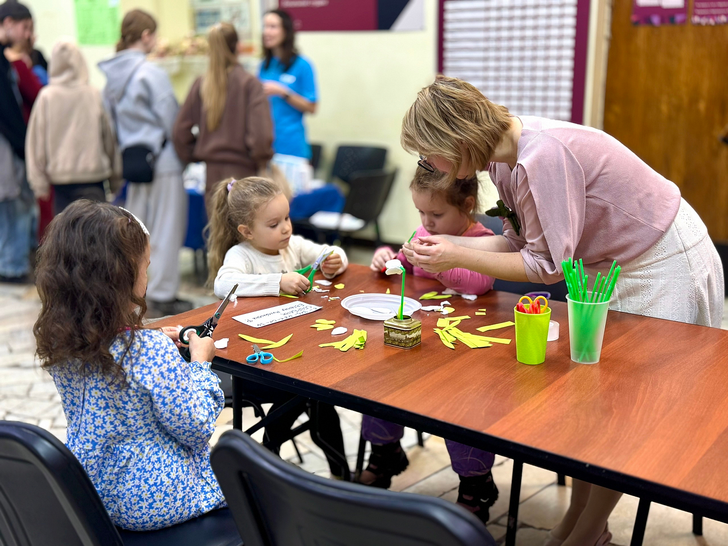 В фойе Дома культуры гости, пришедшие на праздник, могли принять участие в мастер-классе по изготовлению подснежников.