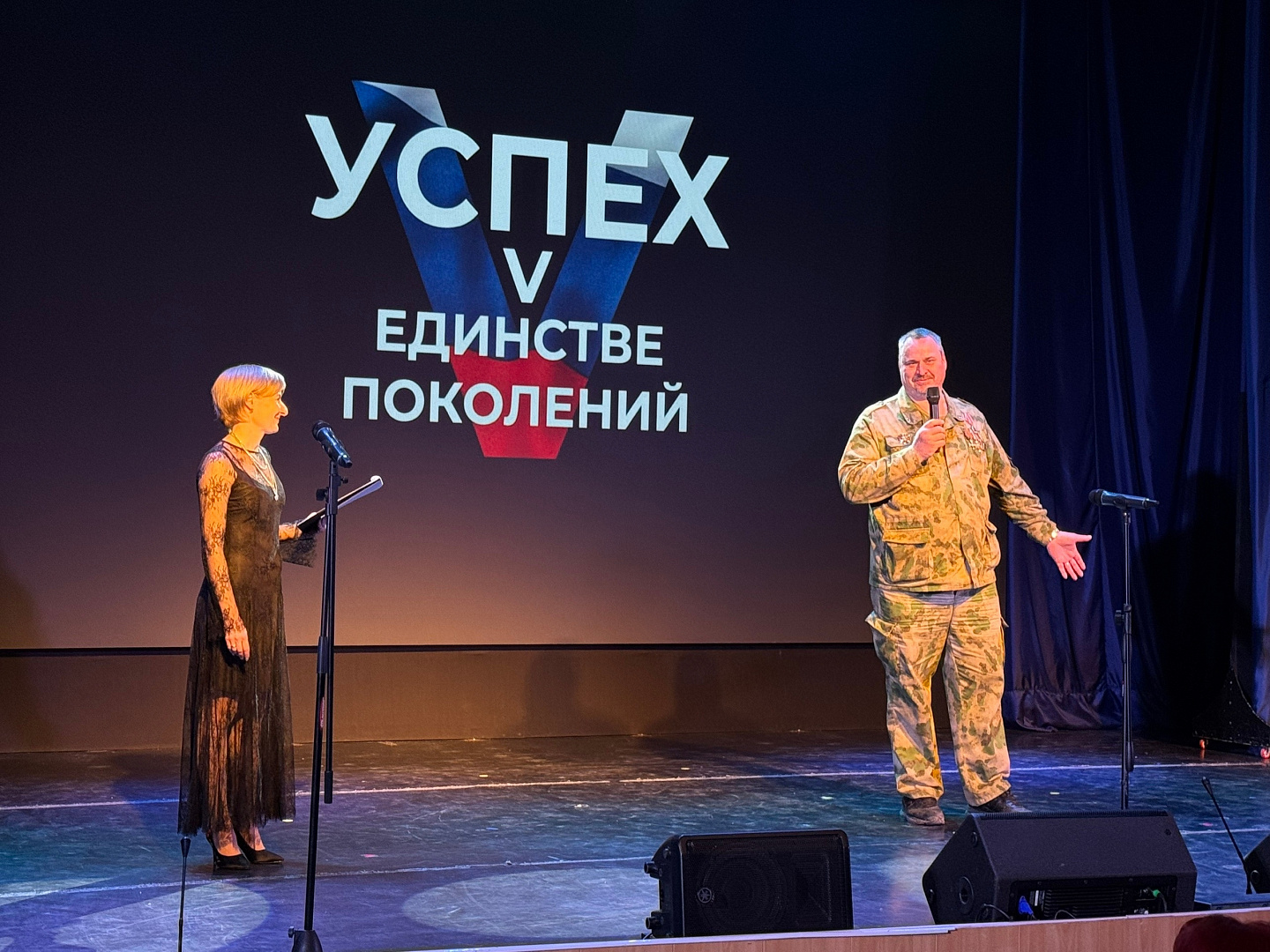 Театралов поприветствовали начальник отдела по культуре, искусству и туризму Управления культуры Администрации городского округа Воскресенск Михаил Павлов, директор МУ «Культурно-досуговый центр» Ольга Якимова и руководитель Воскресенского отделения Ассоциации ветеранов СВО Олег Стегура.