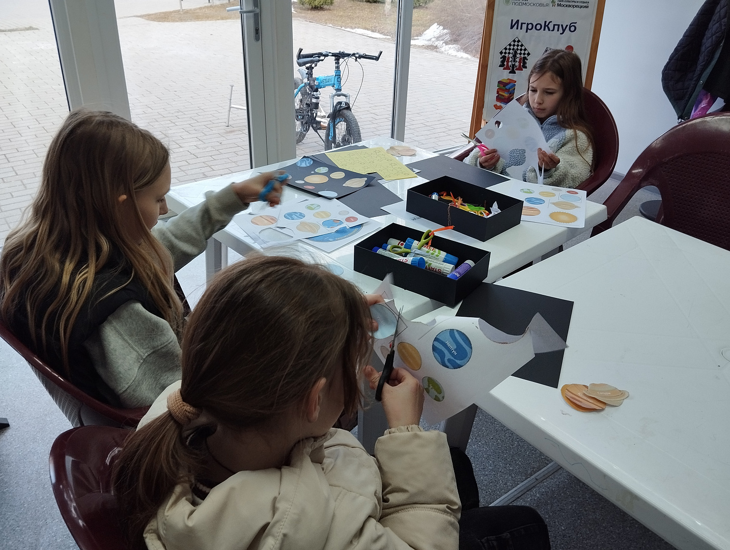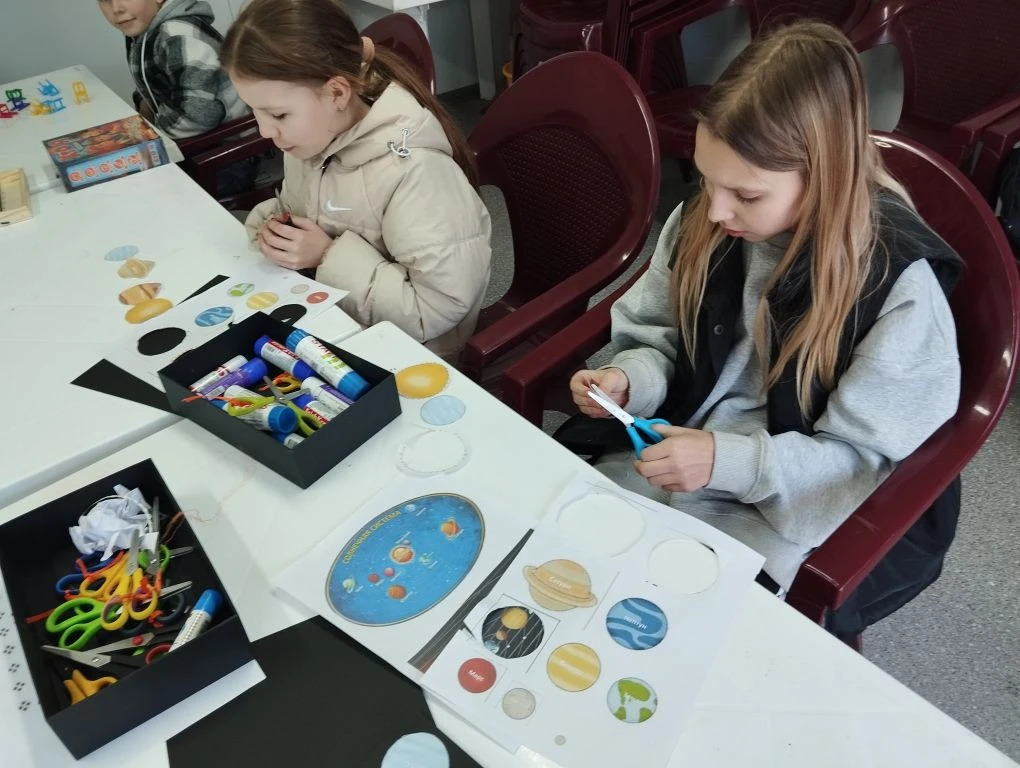 В парке «Москворецкий» прошла тематическая беседа «Путешествие по галактике» о нашей родной планете, Солнце и других космических объектах, входящих в состав Солнечной системы. А на мастер-классе «Солнечная система» ребята закрепили полученную информацию, сделав аппликацию, на которой они разместили планеты вокруг солнца. В этой работе им очень помогло стихотворение про планеты, выученное ранее.