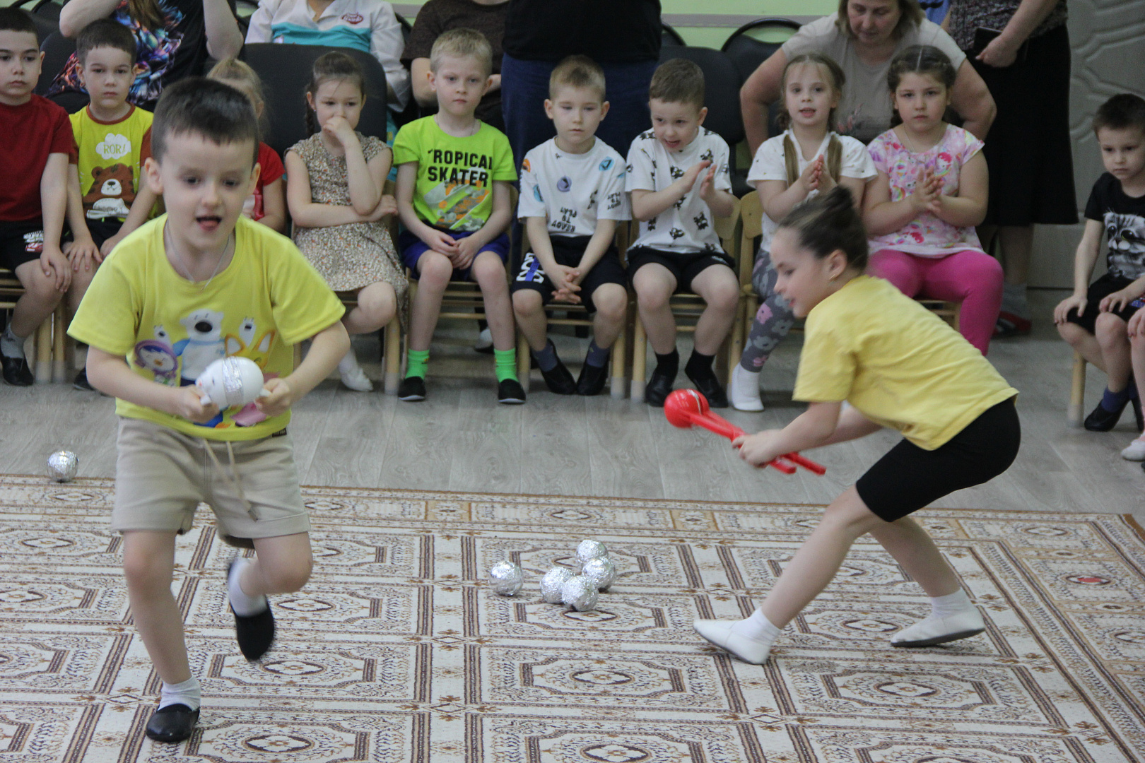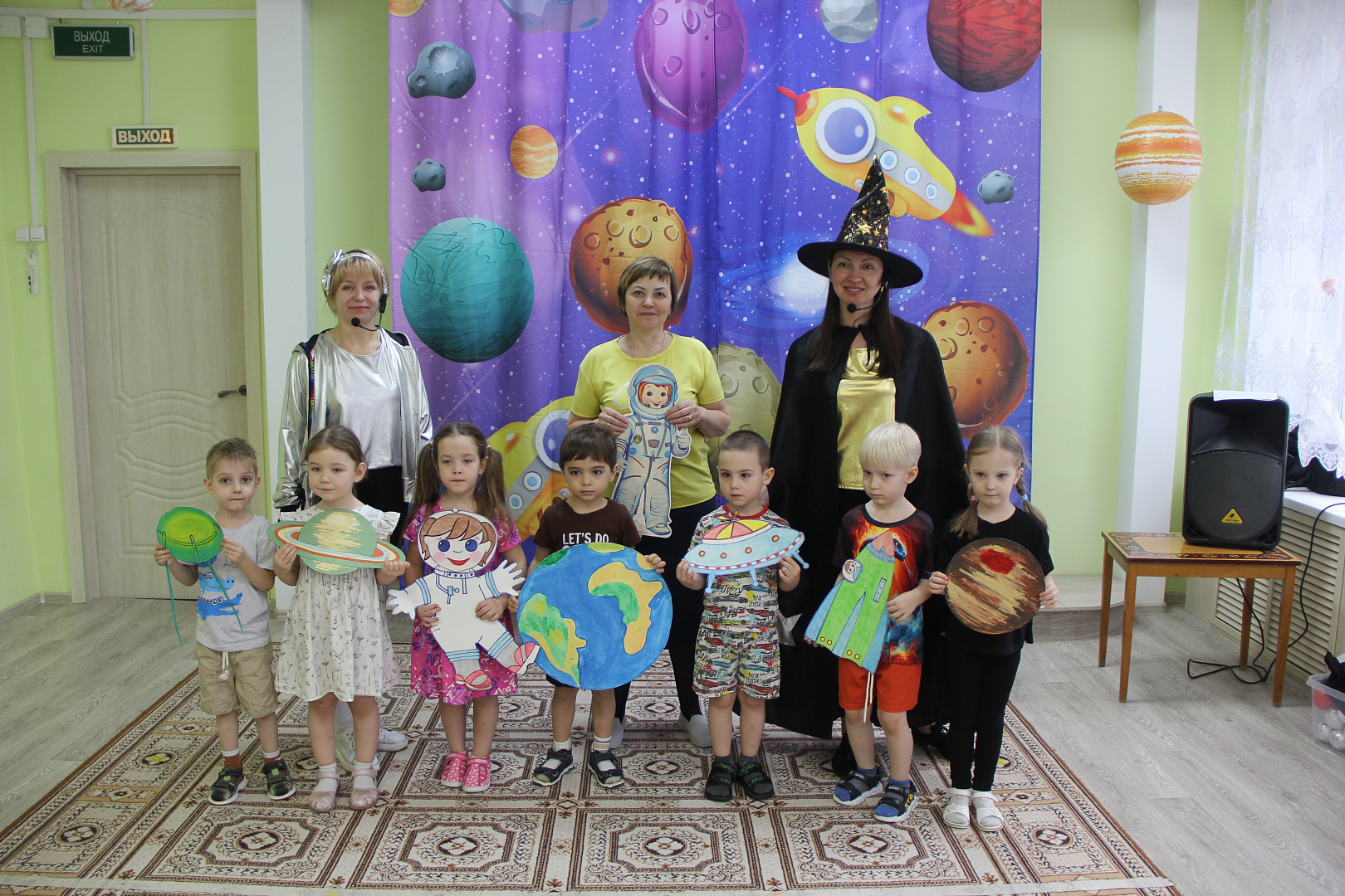 С инструктором мальчишки и девчонки делали космическую разминку, изучали правила космических полетов. Звездочет рассказывал о планетах, звездах и метеоритах. И конечно не обошлось без подвижных игр: собрать метеориты, пролететь сквозь кольца Сатурна, не попасть в «Черную дыру».