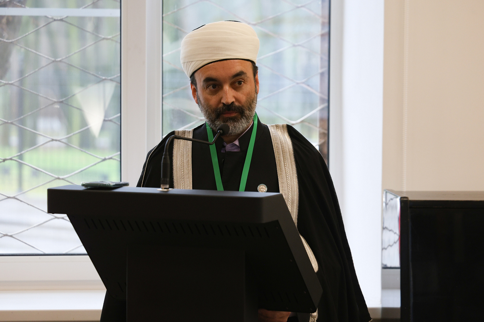 Слова приветствия от имени председателя Духовного управления мусульман Российской Федерации Главного Муфтия Шейха Равиля Гайнутдина передал кандидат философских наук, заместитель председателя Духовного управления мусульман Российской Федерации, председатель Духовного управления мусульман Московской области Муфтий Рушан Аббясов.