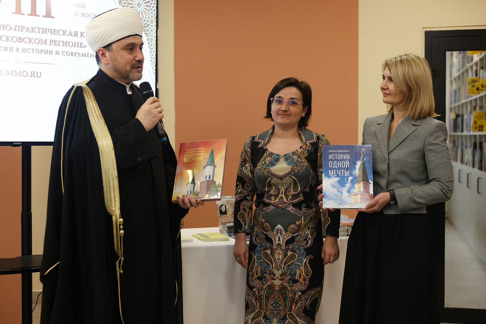 Завершающим событием конференции стала презентация третьего выпуска ежегодного журнала ДУМ МО «Завет». Составитель журнала, руководитель пресс-службы ДУМ МО Станислав Токарев и Муфтий Рушан Аббясов вручили журналы и книги начальнику Управления культуры Администрации городского округа Воскресенск Елене Баклушиной и директору МУК «Воскресенская централизованная библиотечная система» Елене Барышниковой.