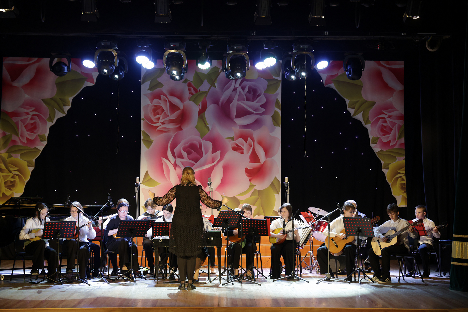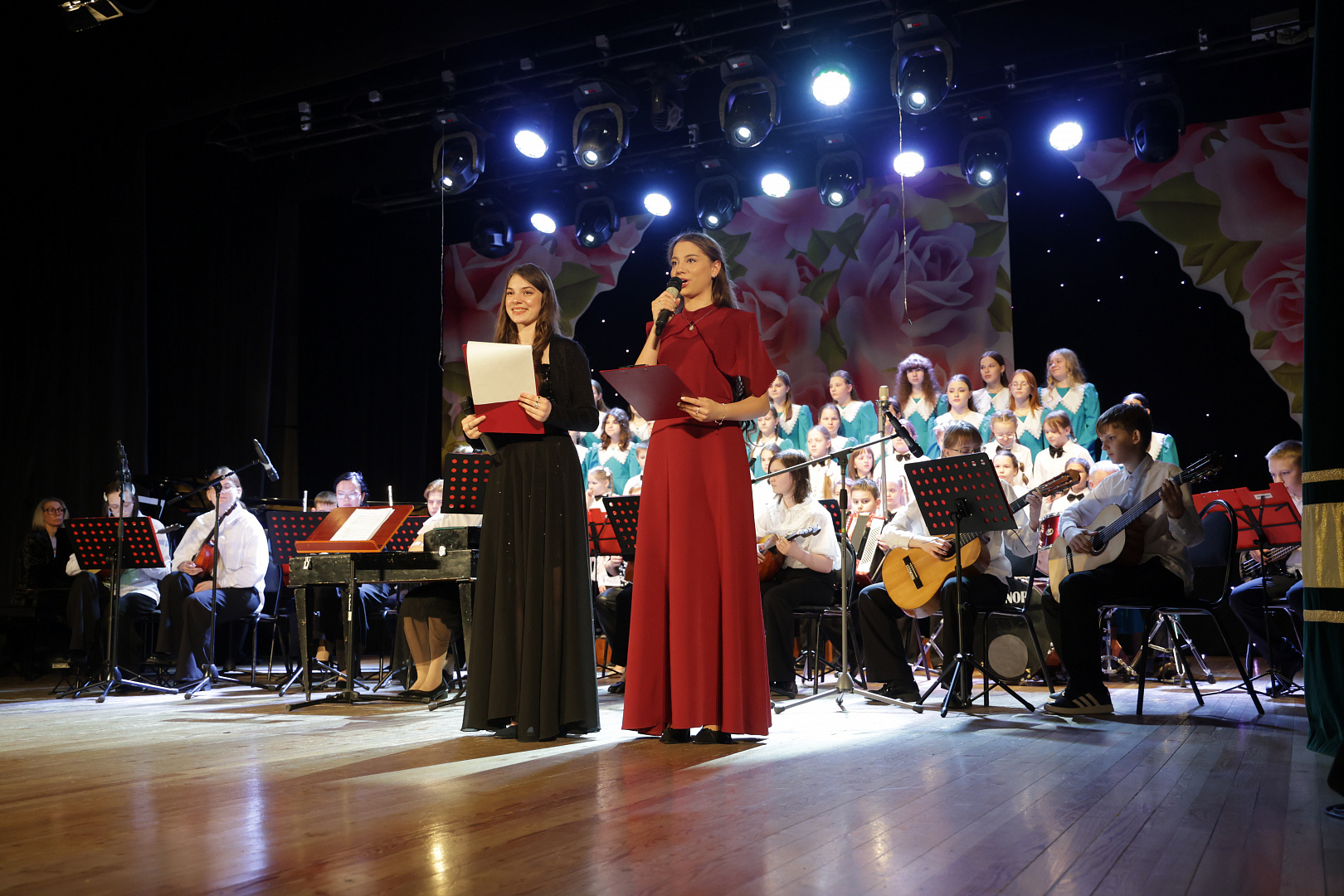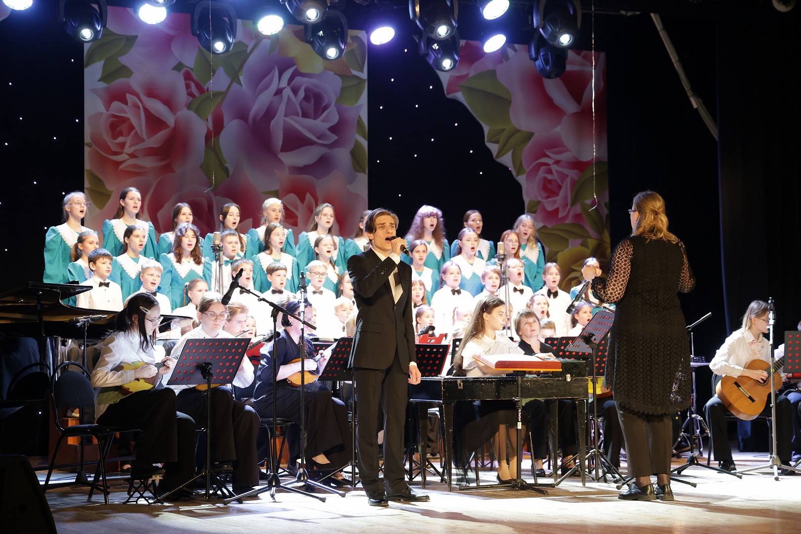 В программе Юбилейного концерта приняли участие: хоры «Мозаика» (младшие классы) и «Скерцо» (старшие классы), солисты и ансамбли пианистов, аккордеонистов, гитаристов, скрипачей и учащиеся отделения ударных инструментов.