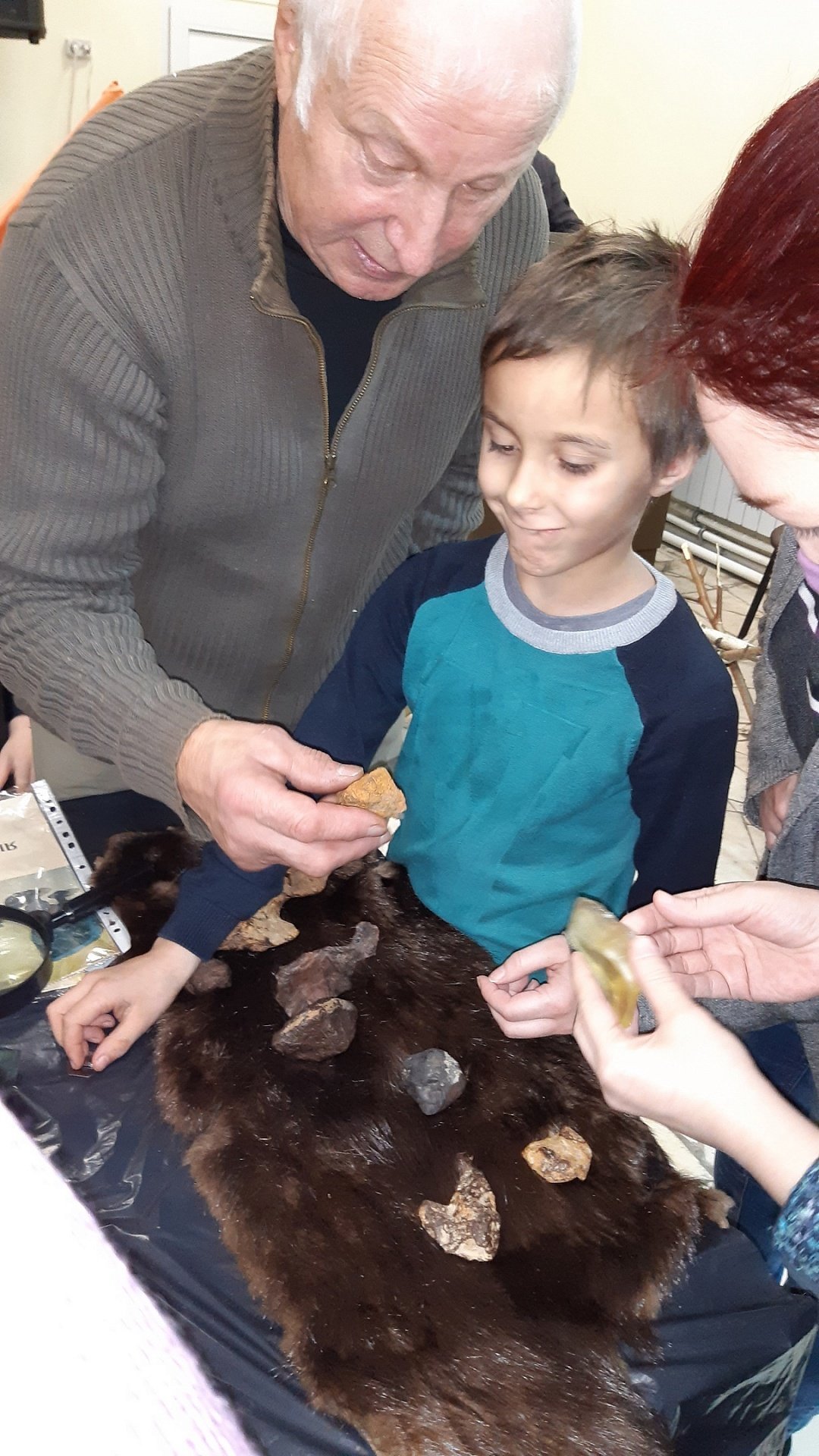 Николай Федорович также показал коллекцию минералов и поделочных камней, ископаемой фауны и небольших космических тел – метеоритов. Рассказал о свойствах минералов и использовании в различных сферах деятельности человека. Было очень интересно и познавательно.