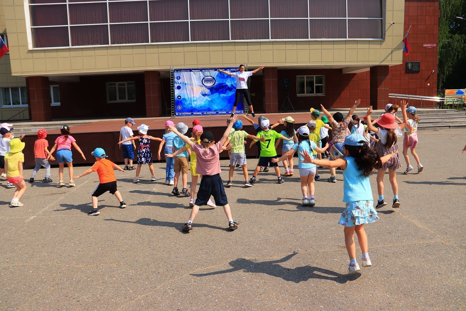 Чтобы зарядиться бодростью и позитивным настроем, приходите на позитивную зарядку на площади ДК «Юбилейный» каждый вторник и четверг, как это делают воспитанники СП ДГ «Звездочка» МОУ «СОШ «Вектор».