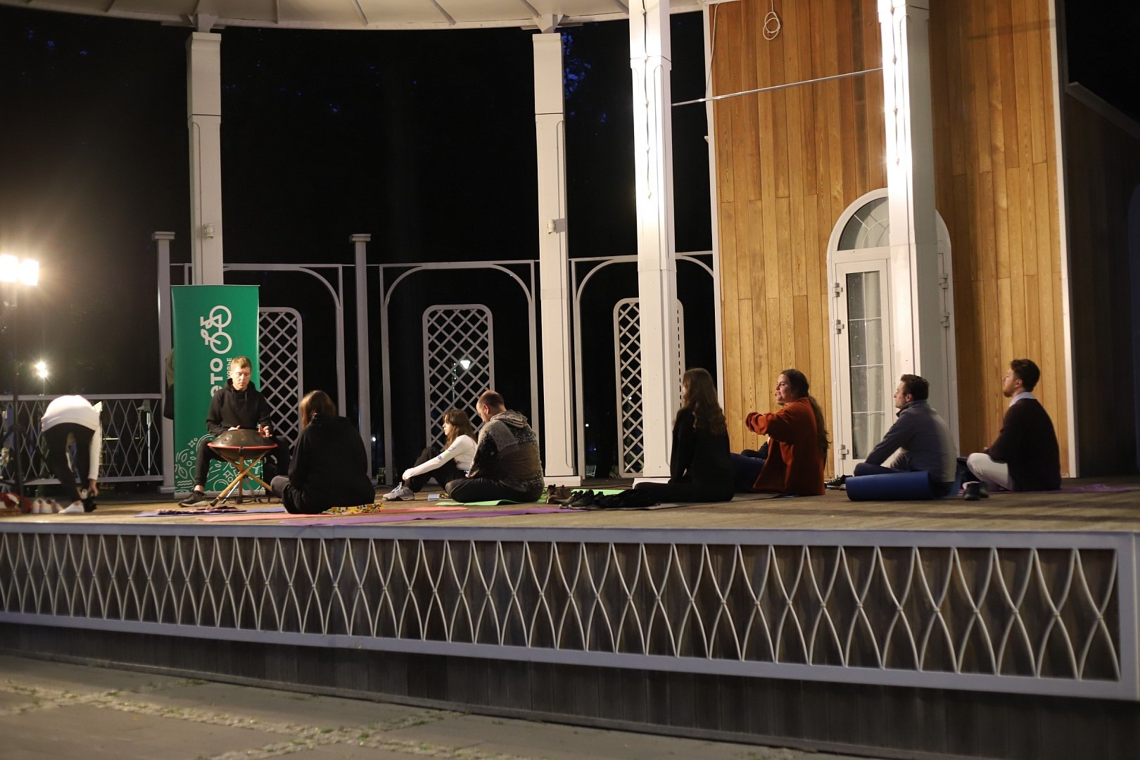 На главной сцене встретились поклонники йоги – под звуки глюкофона они расслаблялись после рабочей недели. На малой сцене парка Екатерина Симонова и Алексей Соколов порадовали публику джазовыми ритмами и песнями из классического соул-репертуара.