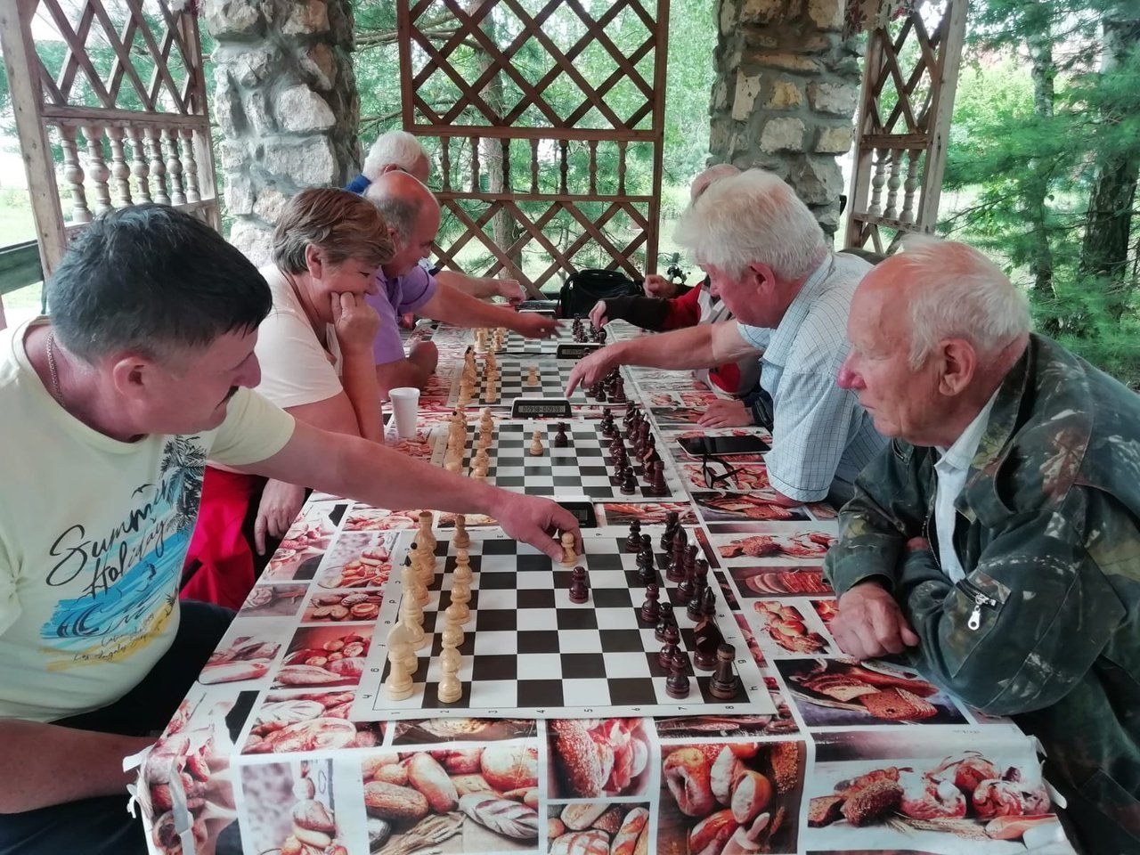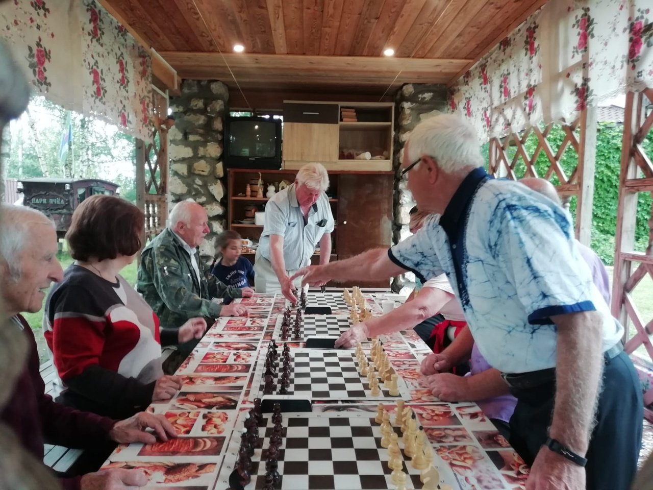 В минувшее воскресенье, 16 июля, в рамках программы «Активное долголетие» состоялся шахматный мини-турнир «Летний рапид». Состязания проводились в прекрасном месте, в гостях у гостеприимного хозяина «Парка пчёл» Николая Александровича Пенькова.