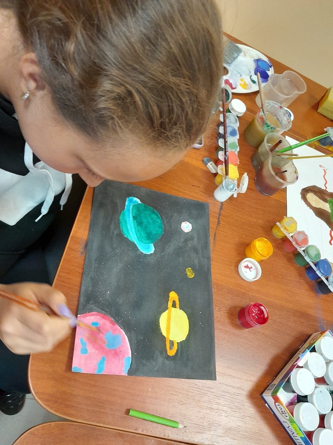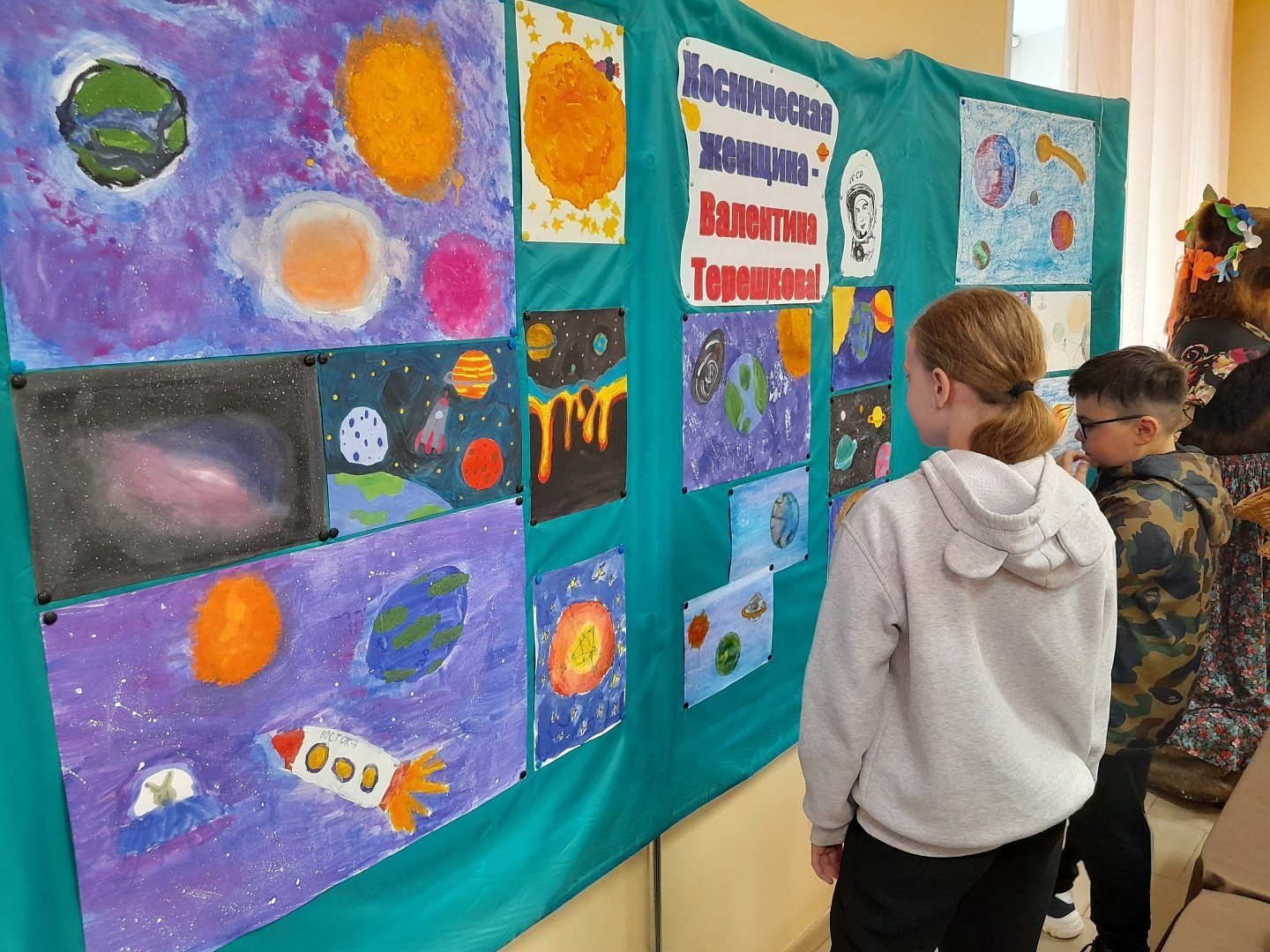 Тема космоса всегда интересна и увлекательна, и дети с удовольствием развивают её в своих рисунках во всех доступных им техниках: карандаши, фломастеры, мелки, пастель и, конечно, краски. Ребята разных возрастов попробовали изобразить своё представление о мировом Космосе: разноцветное мерцание звезд, завораживающие яркие следы от падения метеоритов, космические корабли, бороздящие просторы вселенной, туманности, планеты и, конечно же, первую женщину-космонавта.