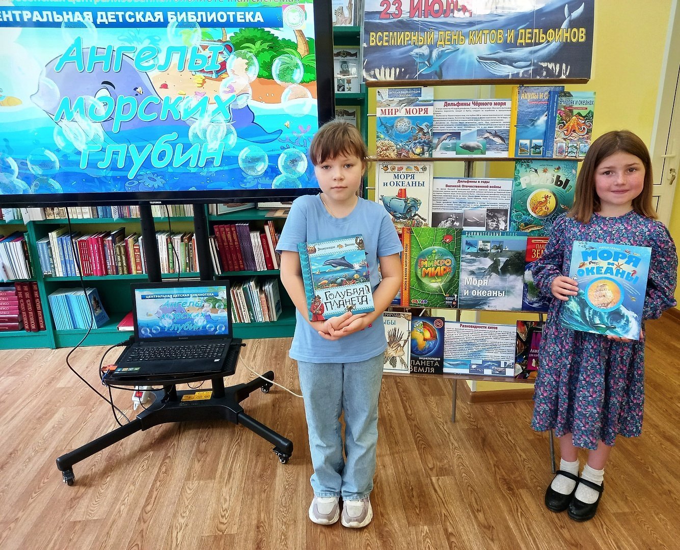 Ребята узнали много интересных фактов из жизни морских млекопитающих. Дети приняли участие в весёлых конкурсах и мастер-классе «Озорной дельфинчик». В завершение мероприятия дети посмотрели мультфильм, в котором рассказывается о крепкой дружбе между девочкой и дельфином.