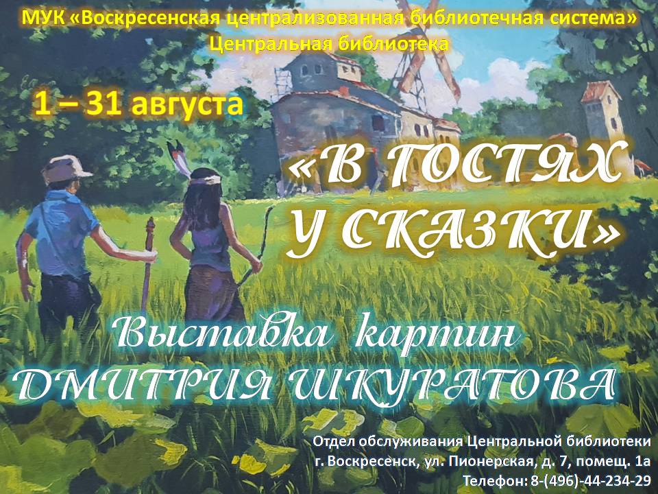 В рамках проекта «Живут таланты в Воскресенске» в Центральной библиотеке открылась выставка картин «В ГОСТЯХ У СКАЗКИ» яркого самобытного воскресенского художника Дмитрия Шкуратова.