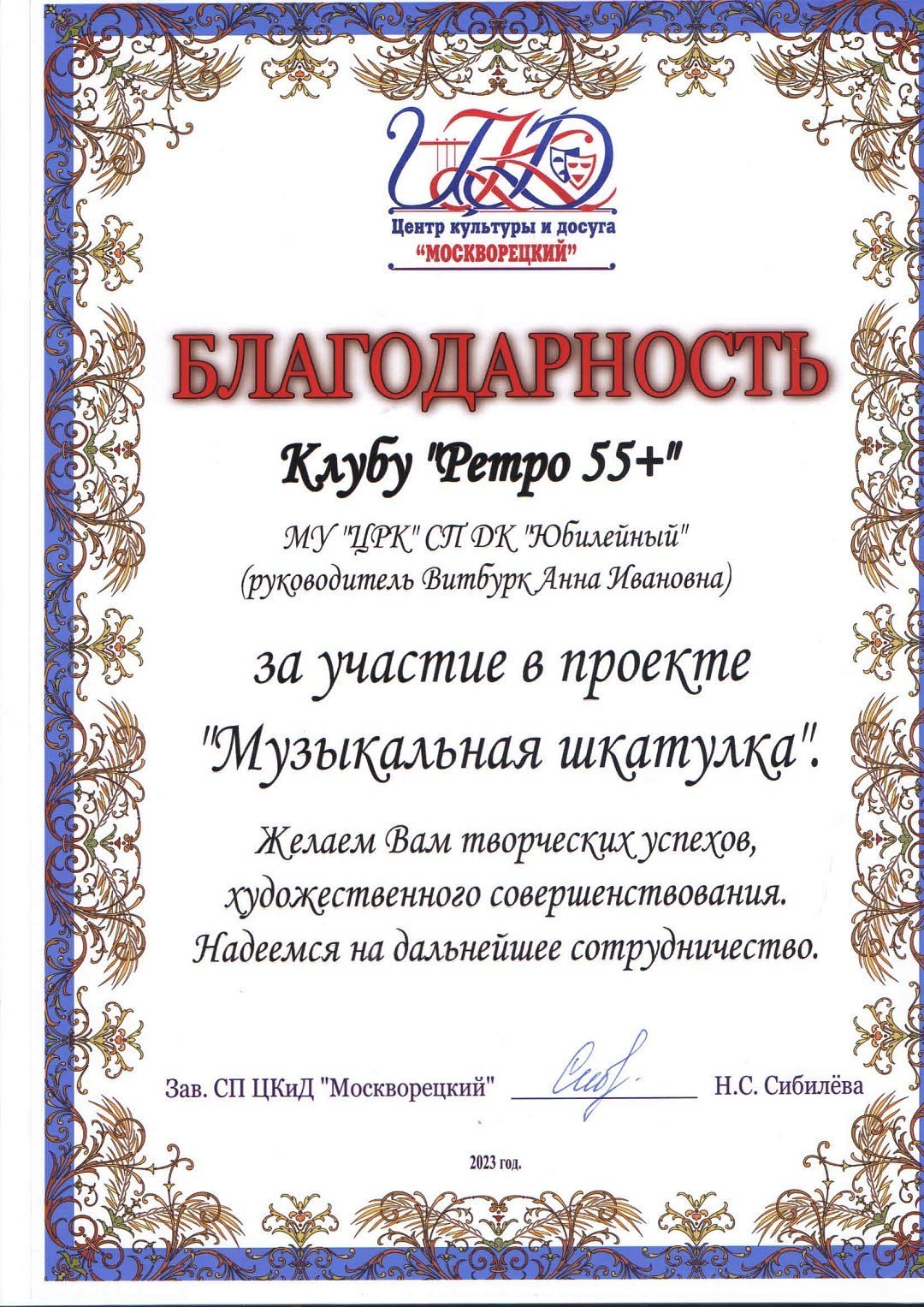 На минувшей неделе творческая команда клуба «Ретро 55+» Дворца культуры «Юбилейный» (руководитель Анна Витбурк) отправились в Парк культуры и отдыха «Москворецкий», чтобы порадовать отдыхающих концертно-развлекательной программой в рамках проекта «Музыкальная шкатулка».