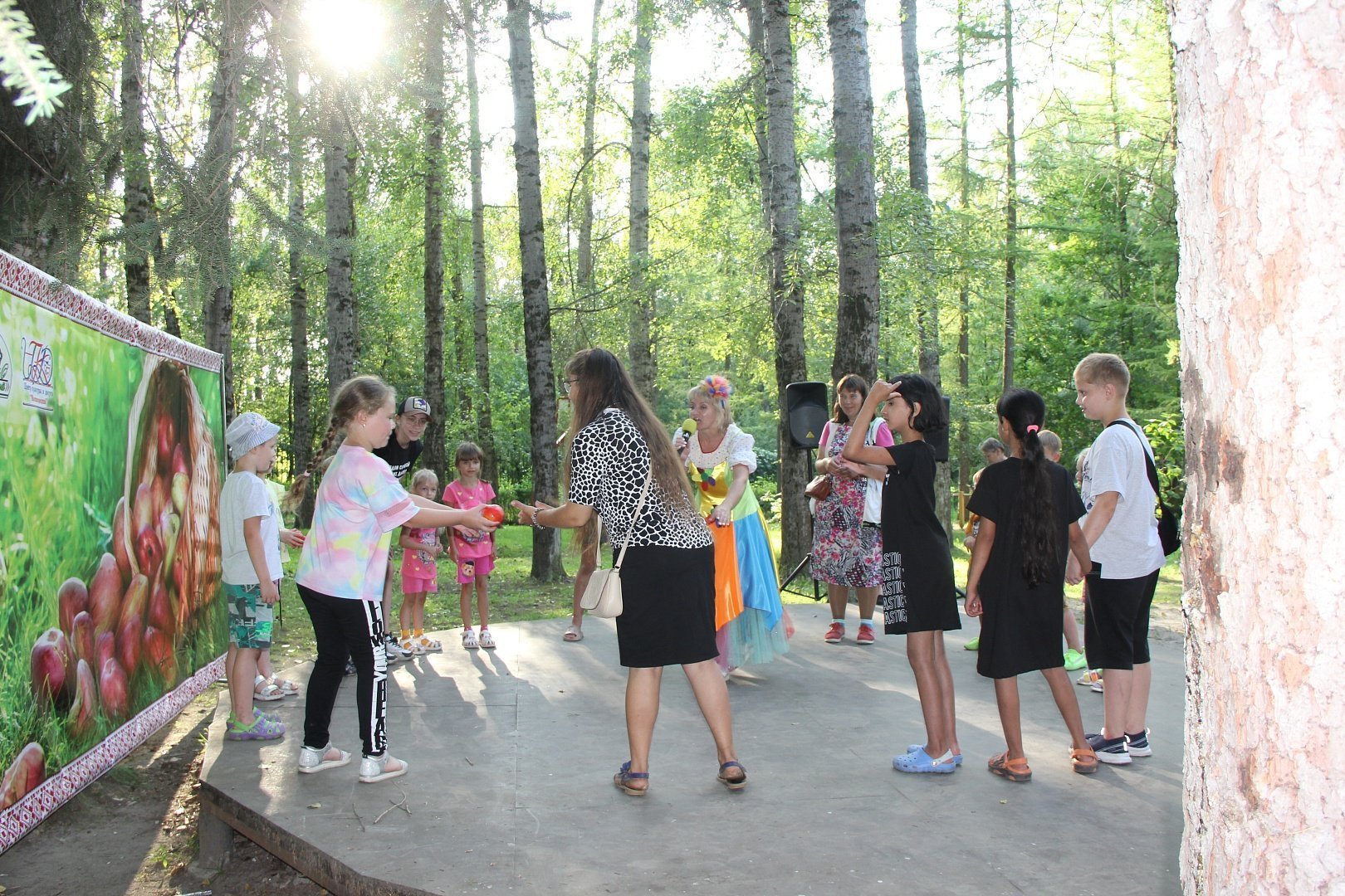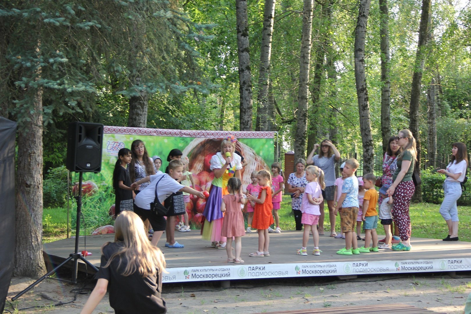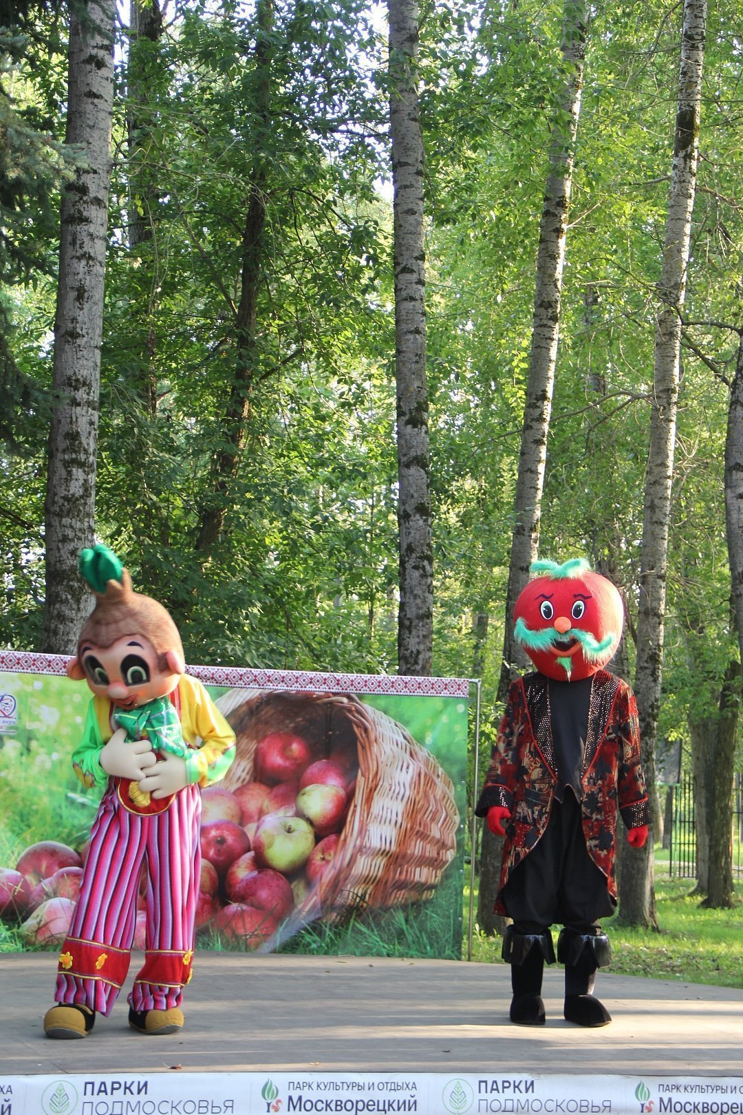 Праздник продолжился детской развлекательной программой. К маленьким гостям парка на праздник приехали ростовые куклы театра «Софит». Ребята послушали забавные истории об овощах и фруктах от Лука и Помидорки, потанцевали вместе с собачками Жужой и Рексом. А чтобы было еще веселее, ребят приглашали на подвижные игры. Все маленькие гости остались довольны и ушли с отличным настроение.