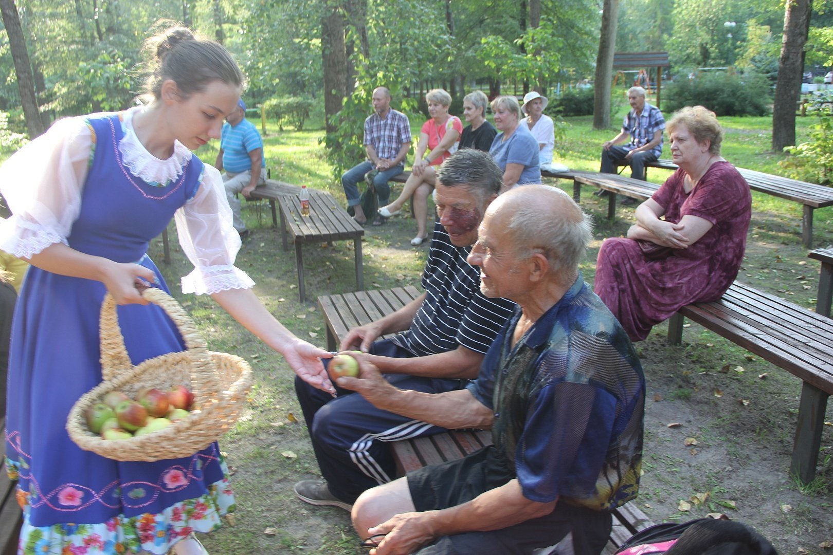 В завершение программы гостей праздника угощали сладкими и сочными яблоками.