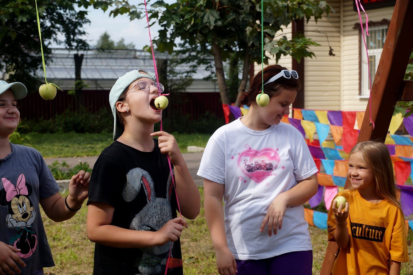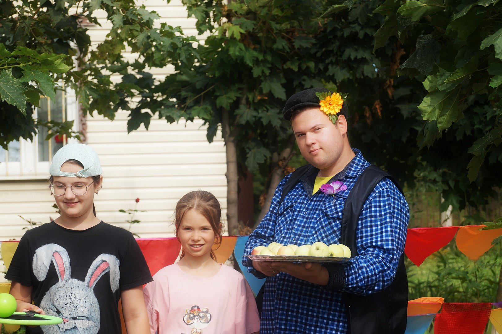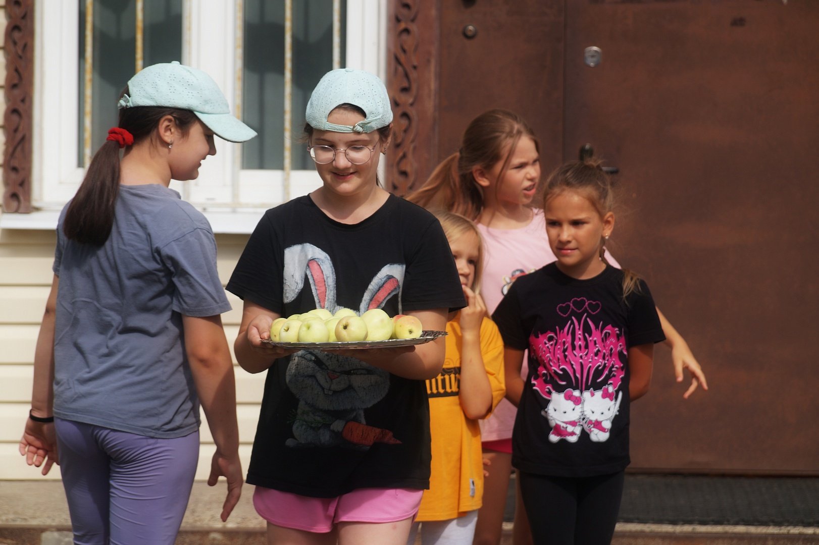 Также поговорили о других Спасах: Медовом, Ореховом. На позитивной ноте поиграли в интересные игры: «хвалебное словечко», «перенеси яблочко», «попади в яблочко», «яблочная рыбалка» и угостили всех яблочками нового урожая.