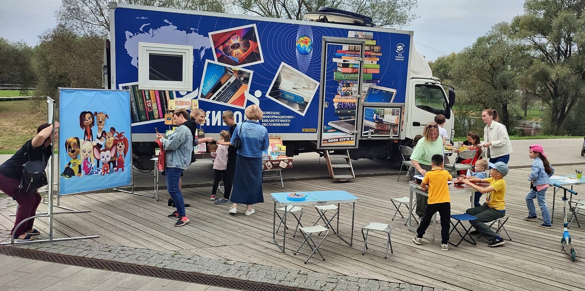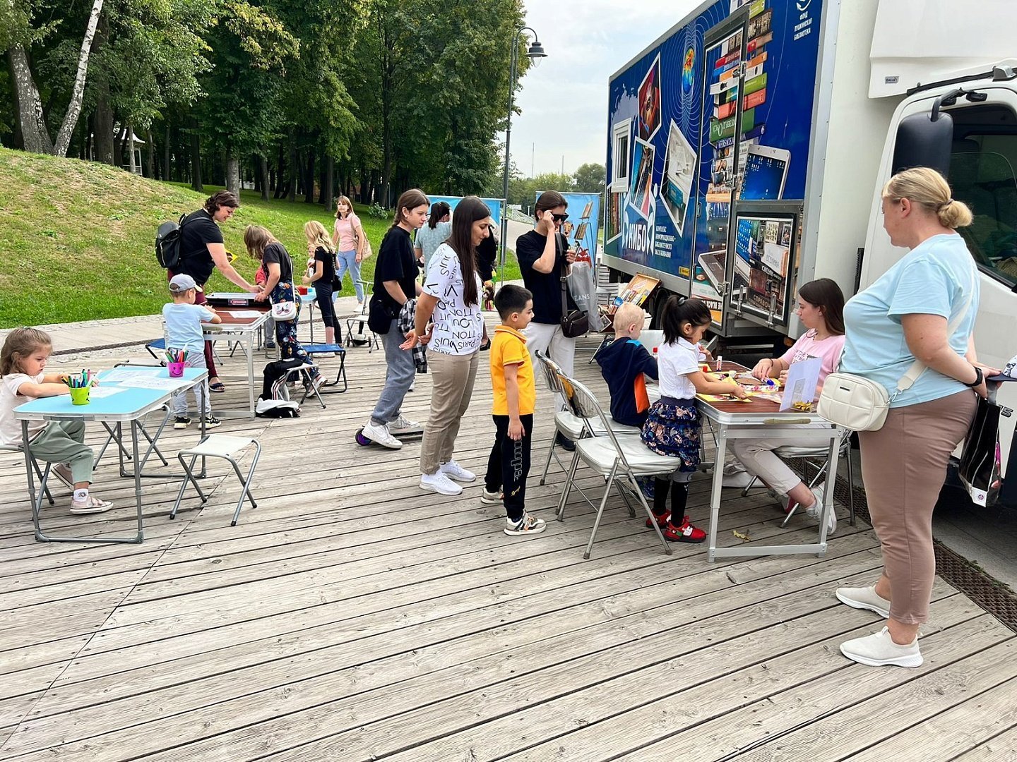 Юные гости «Аллеи читающих людей» играли в настольные игры, раскрашивали весёлые картинки, мастерили тематические поделки на мастер-классах. Дети вместе с родителями могли ознакомиться с книгами на книжной выставке «PROGRAMотность», проверить свои знания русского языка и грамотности во время познавательной викторины «Игра слов». Желающие брали любую понравившуюся книгу в «Читающем чемоданчике» с буккроссингом и фотографировались в тантамаресках.