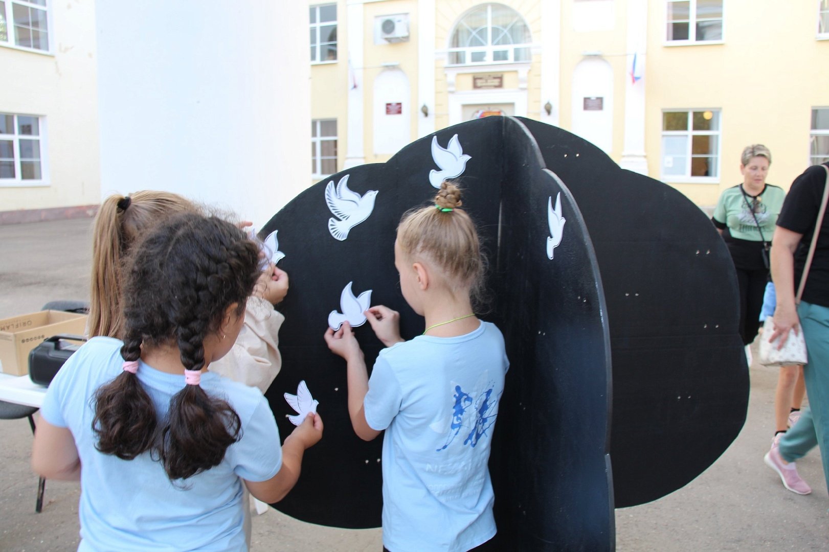 В ДК «Цементник» прошла акция «Дерево мира». Участники вырезали из бумаги белых голубей и прикрепили их к символическому «дереву мира, которое стало символом созидательности и естественного хода жизни. Ведь белые голуби, заполнившие крону дерева, повсеместно считается символом мира, борьбы против войны, насилия.