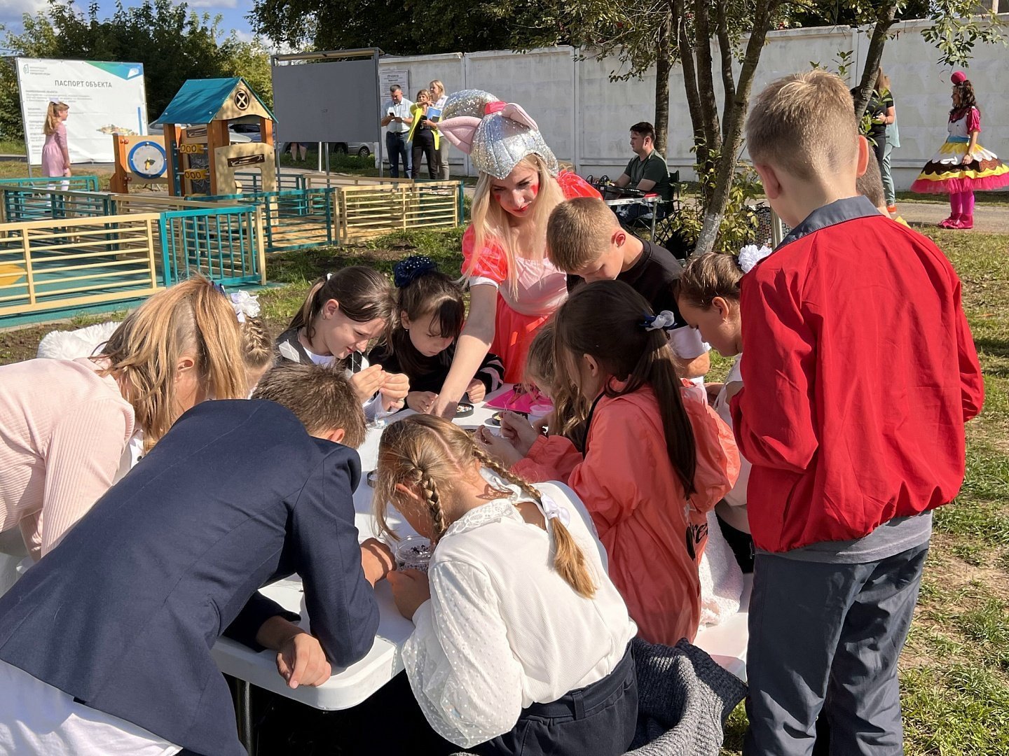 Для детей был устроен настоящий праздник. Юных жителей поселка ждали: весёлые Сладкоежки, энергичные зайцы, творческие мастер-классы от МУ " Культурно-досуговый центр", аквагрим, воздушные шарики и, конечно же, море веселья, радости и вкусное мороженое.