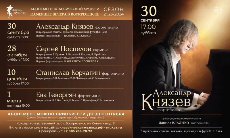 30 сентября 17:00 Концерт заслуженного артиста РФ, солиста Московской филармонии - Александра Князева, фортепиано.