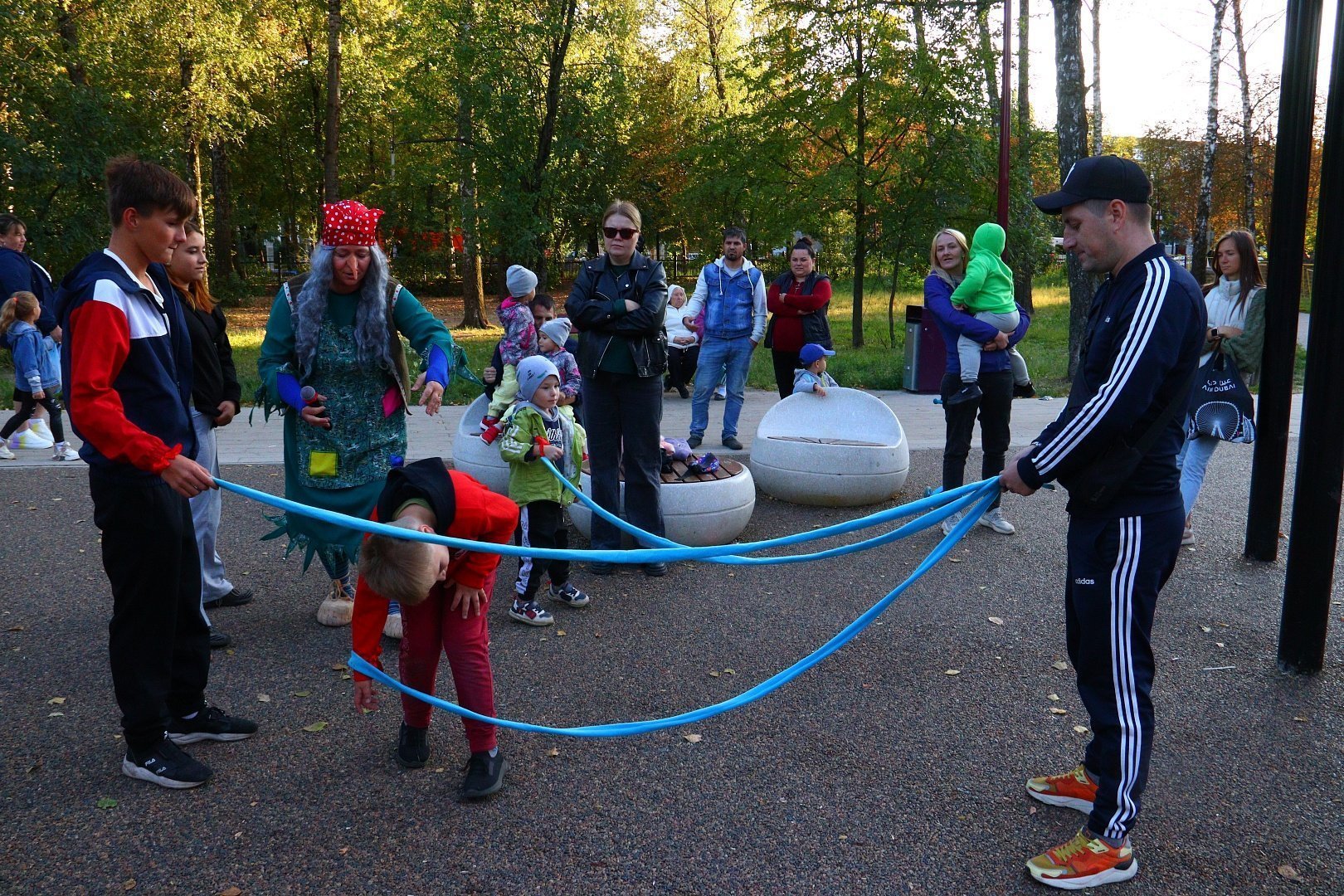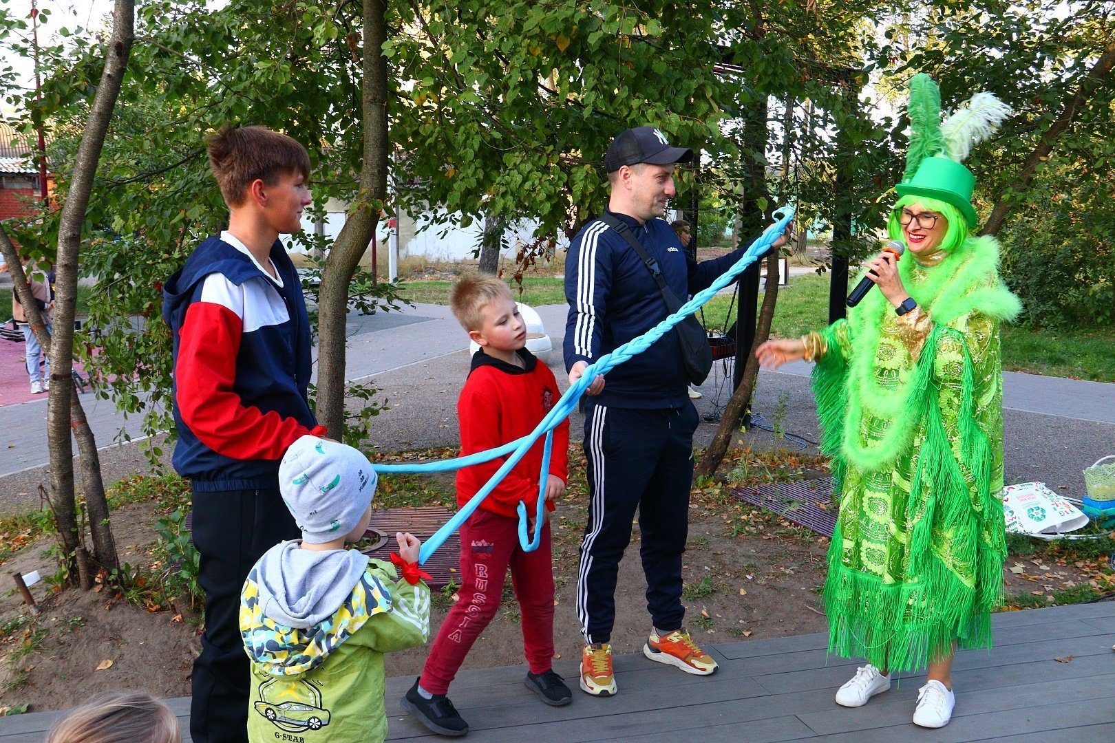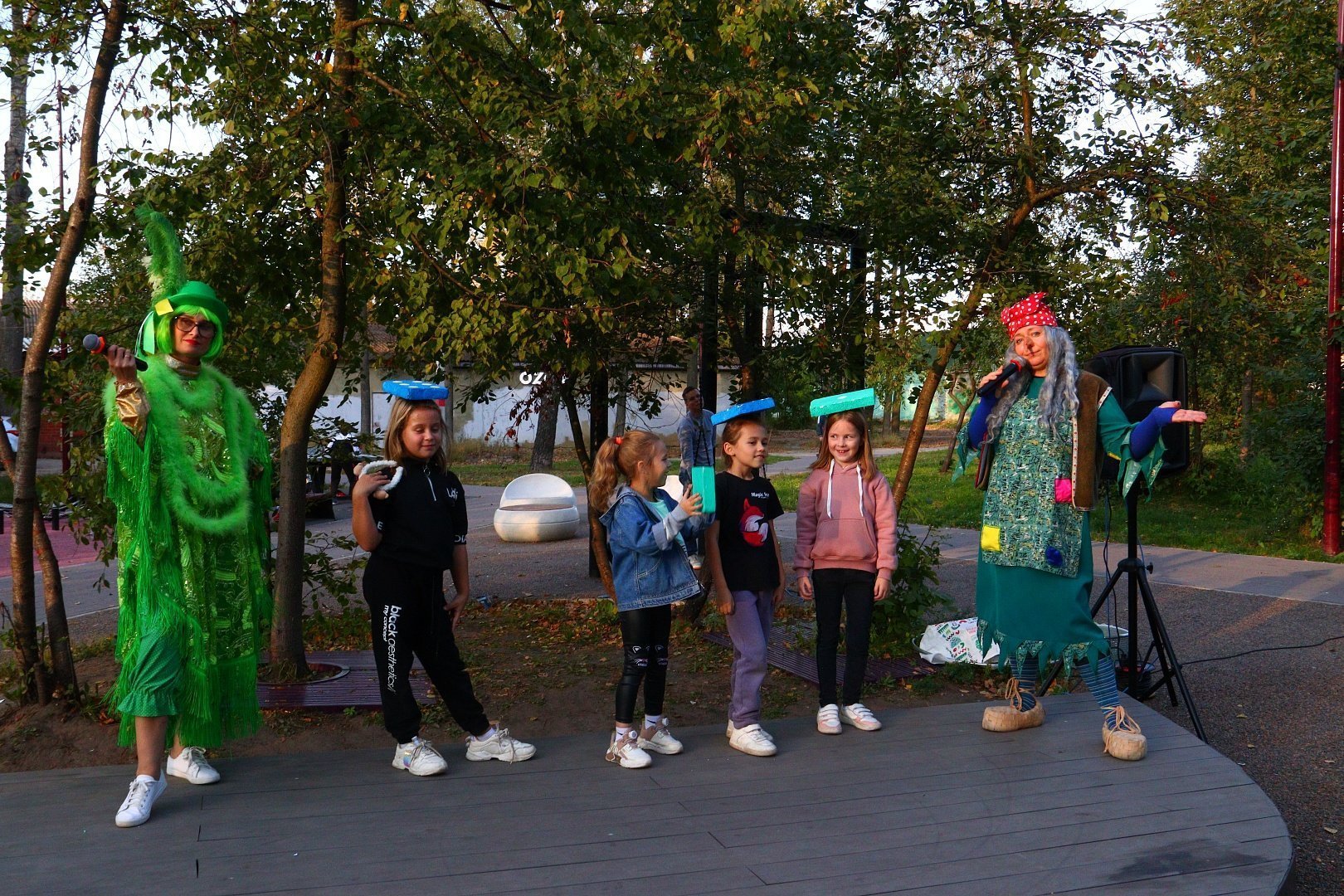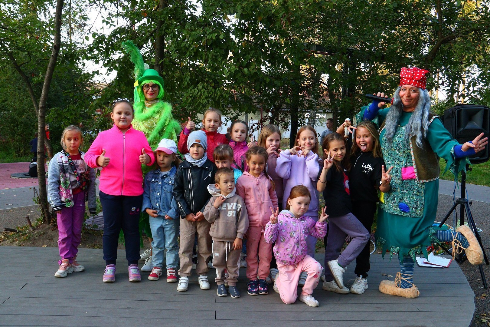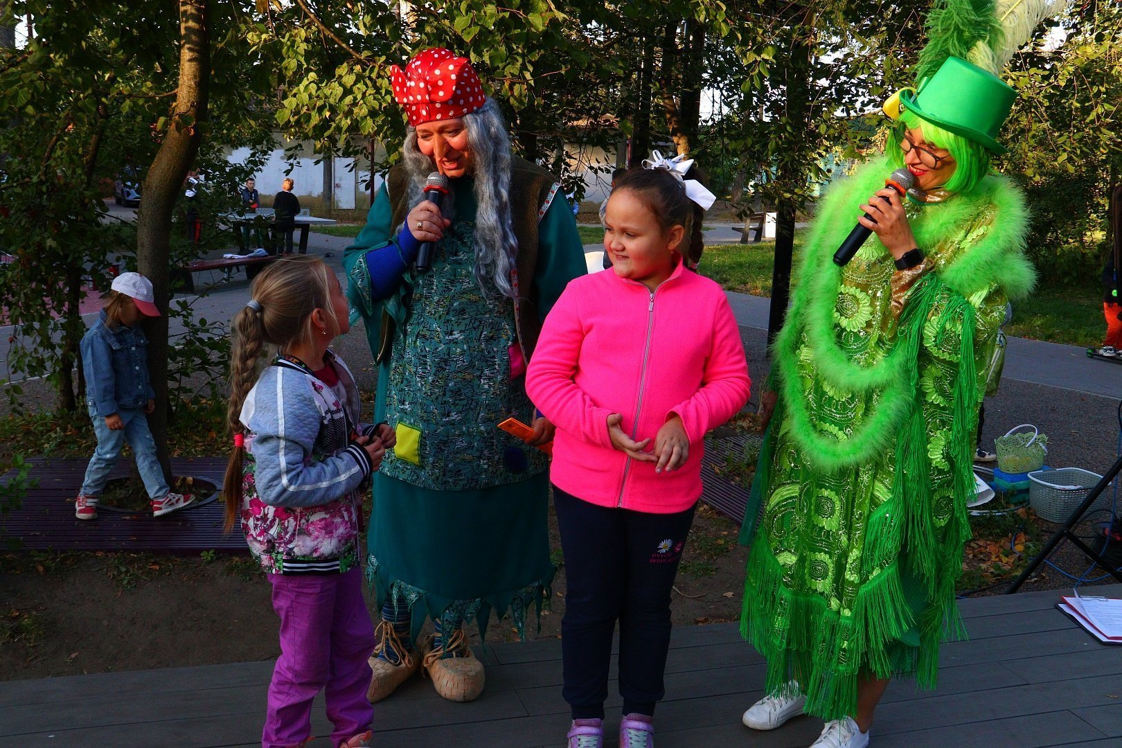 Поздравить присутствующих с праздником пожаловала Кикимора, заявившая всем, что она самая первая красавица в сказочном мире, но, к её сожалению, с этим заявлением категорически не согласилась еще одна претендентка на звание «Лесная красавица» - Баба Яга.