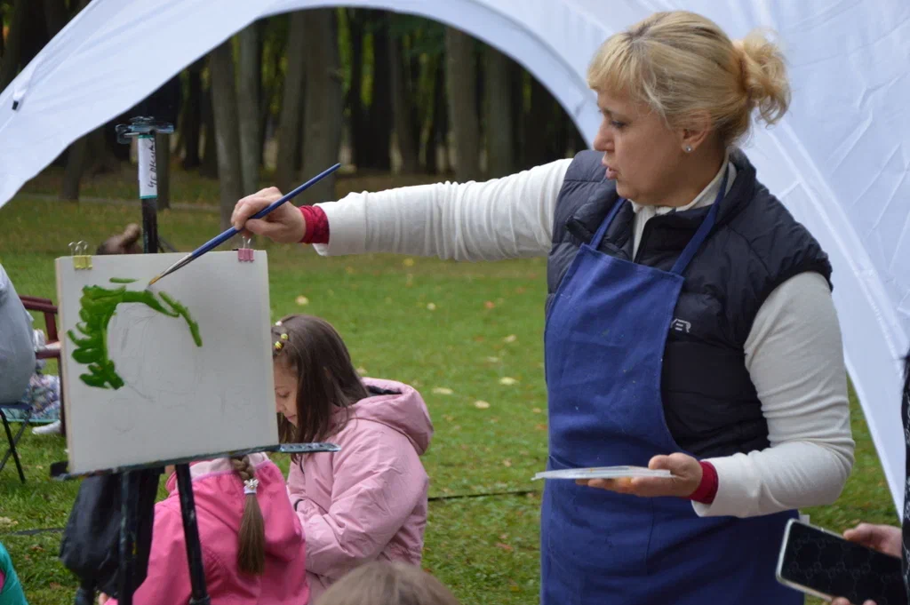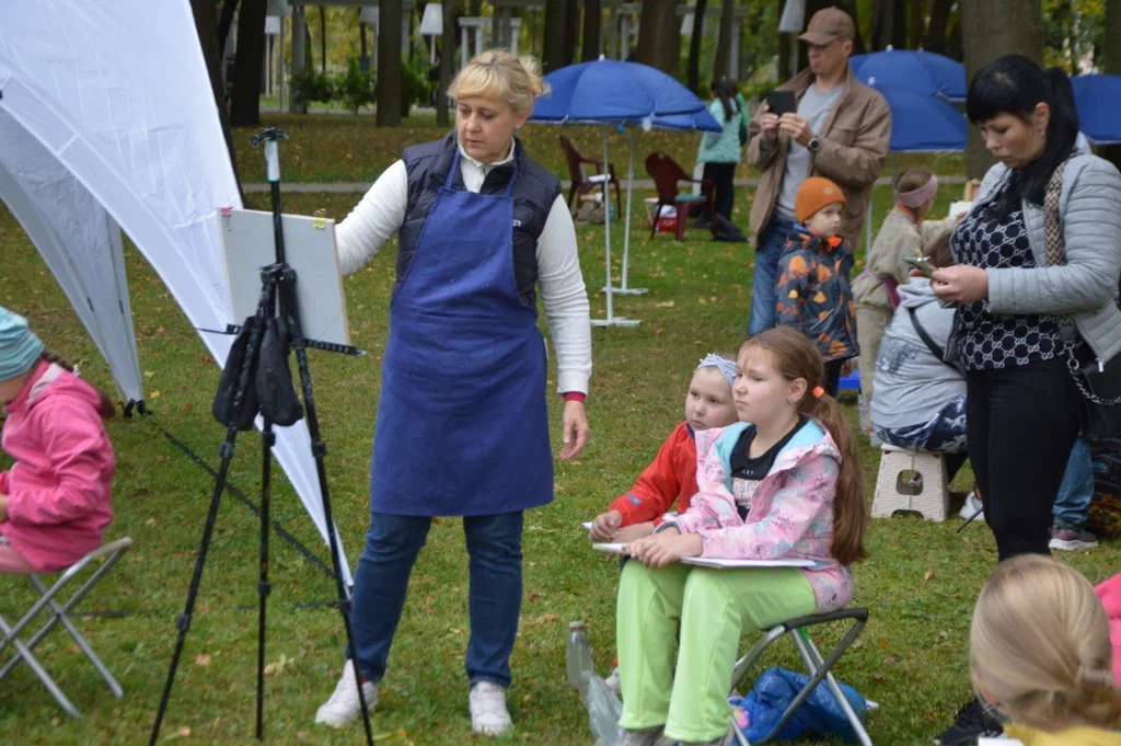 Парк Усадьбы Кривякино стал большой творческой мастерской под открытым небом. В уютных, тихих уголках расположили свои мольберты любители пейзажей, у центральной площади веселые и шумные стайки ребятни рисовали осенние натюрморты, а кто-то бродил по парку и делал зарисовки в скетч-бук, надеясь уже после передать очарование жемчужины Воскресенска в своих картинах. Центр парка был наполнен прекрасными звуками живой музыки.