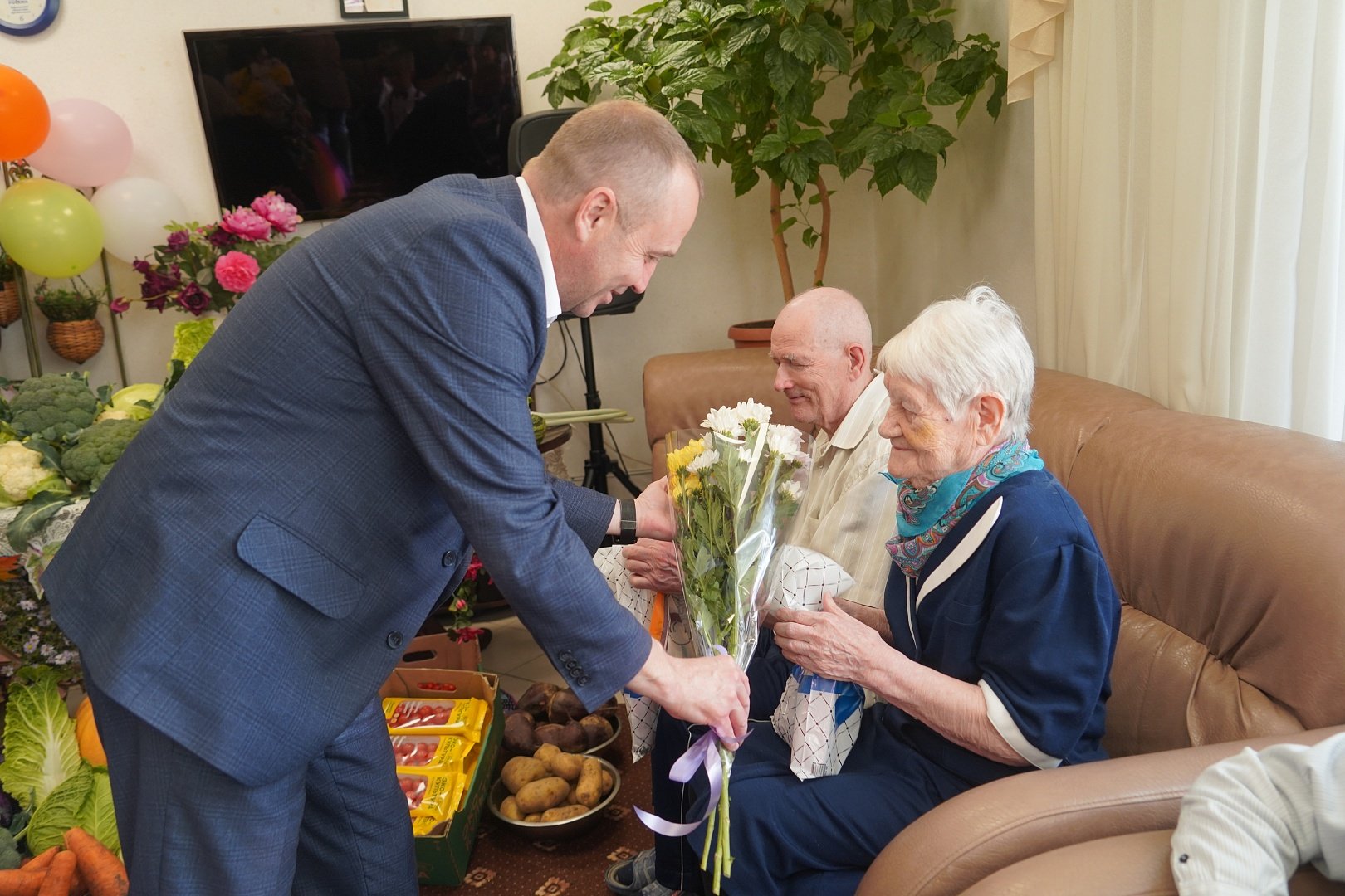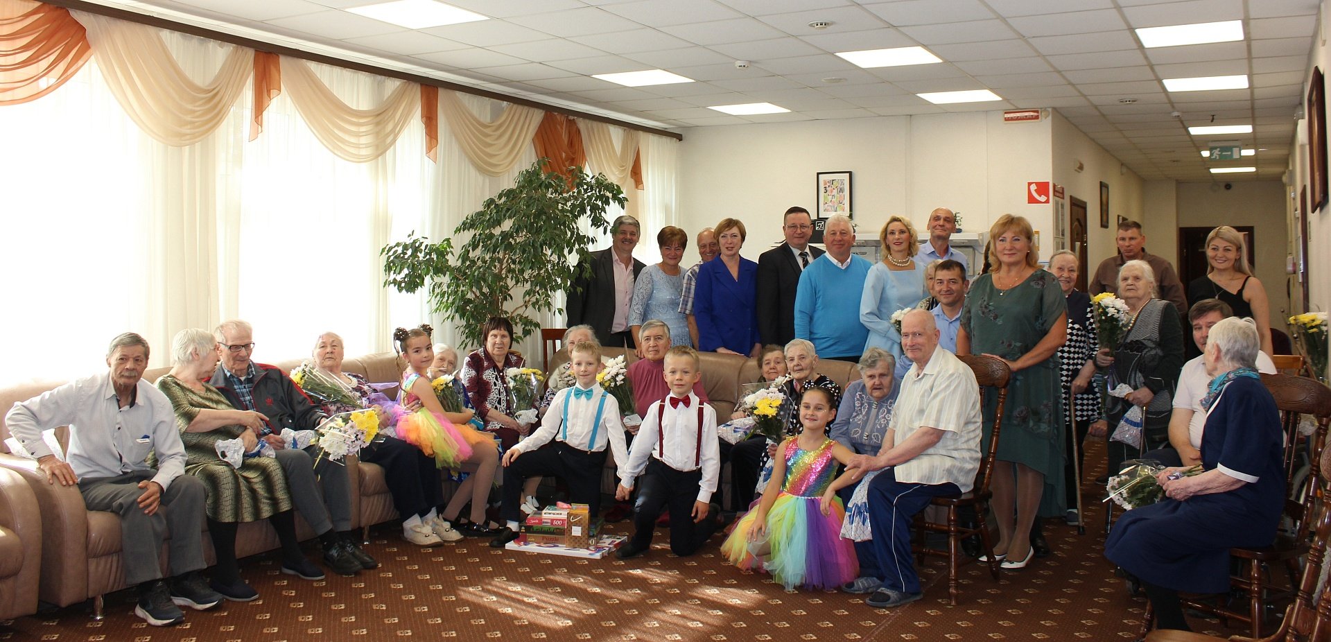 В доме-интернате малой вместимости Комплексного центра социального обслуживания и реабилитации «Воскресенский» прошло торжественное мероприятие «От всей души». С приветственными словами к ветеранам обратились Глава городского округа Воскресенск Алексей Валерьевич Малкин, Директор ООО «Мария» Петр Кирсанов и генеральный директор ООО ТК «Подмосковье» Владимир Пилипенко, которые поздравили пожилых людей с праздником и вручили подарки. Работники Дома культуры рабочего посёлка им. Цюрупы МУ «ВКМЦК и Т «Истоки» подготовили яркую концертную программу для всех собравшихся. Звучали популярные песни советских композиторов, танцевальные мелодии, народные застольные песни.