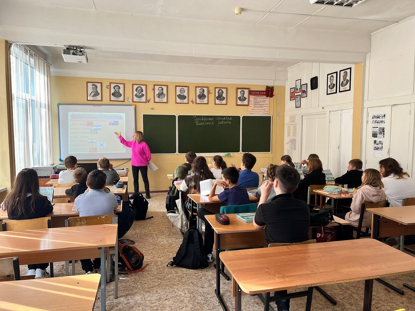 Сегодня, в рамках проекта «Школьный год с библиобусом», сотрудники комплекса информационно-библиотечного обслуживания городского округа Воскресенск провели для учащихся 5 класса МОУ «Лицей 23» деревни Цибино мероприятие под названием «Признание учителю», посвящённое Дню учителя.