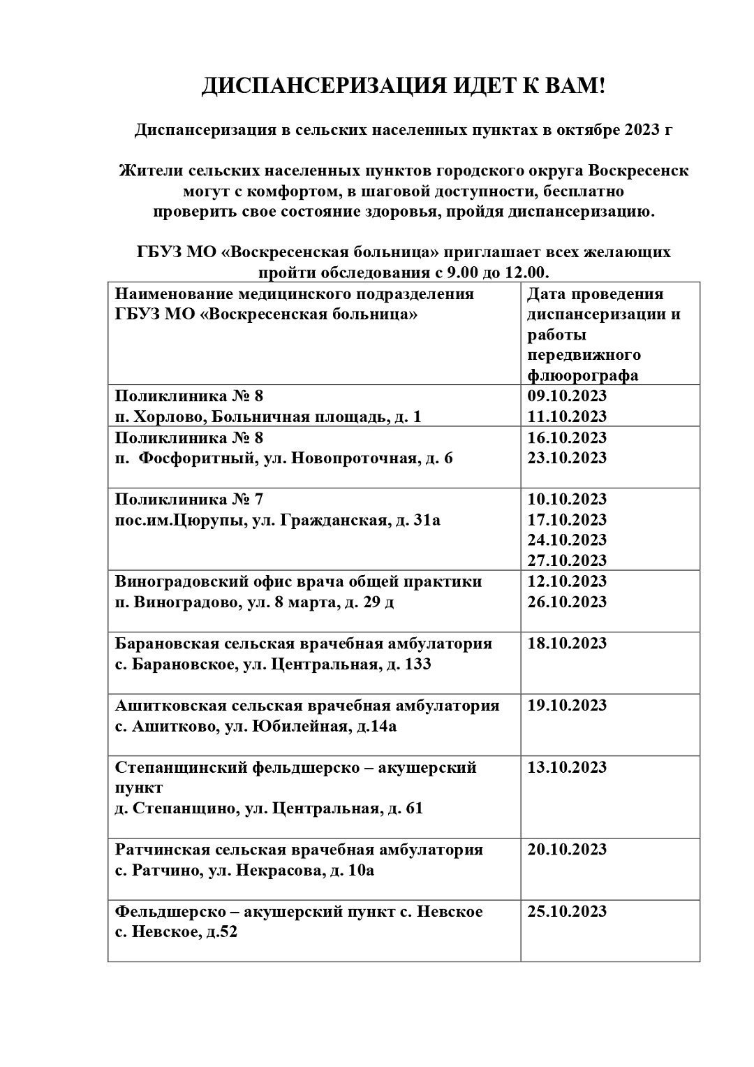 Жители сельских населенных пунктов городского округа Воскресенск могут с комфортом, в шаговой доступности, бесплатно проверить свое состояние здоровья, пройдя диспансеризацию.