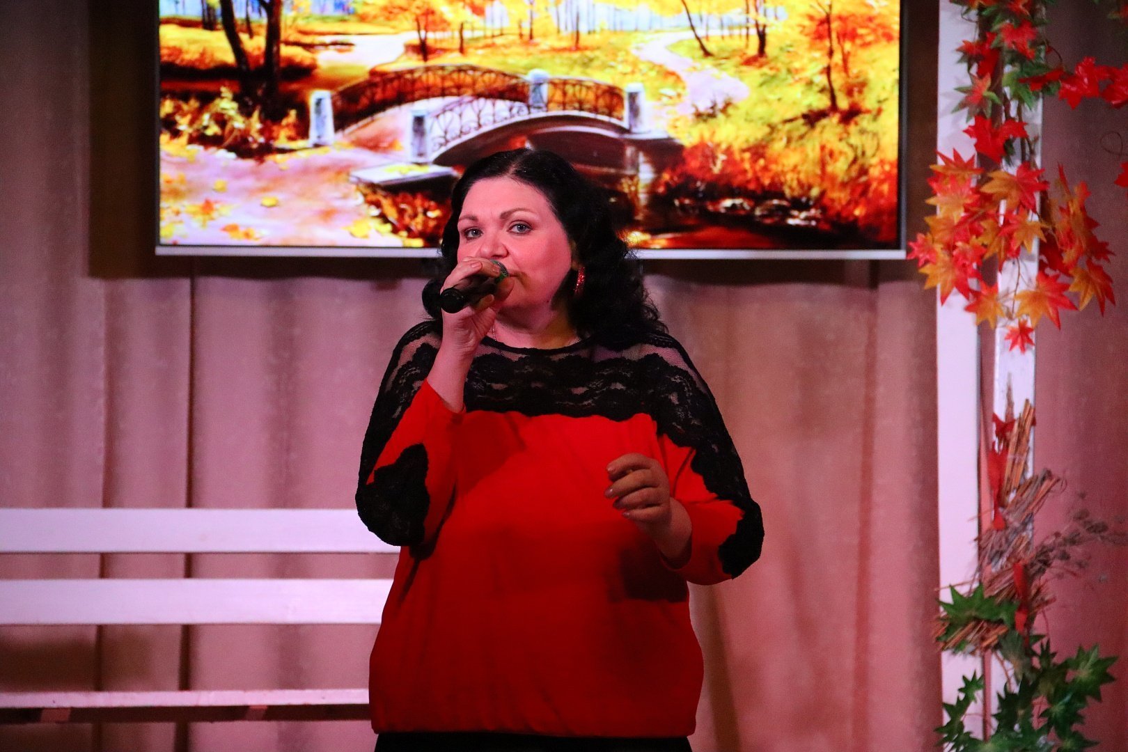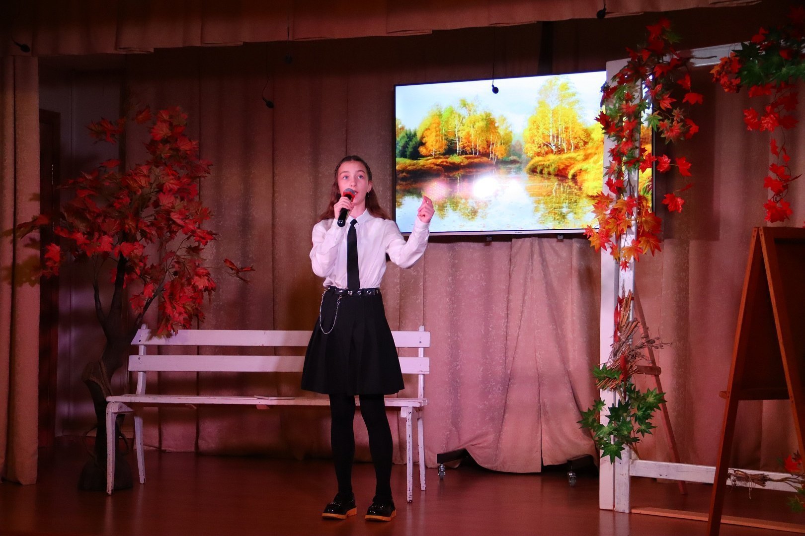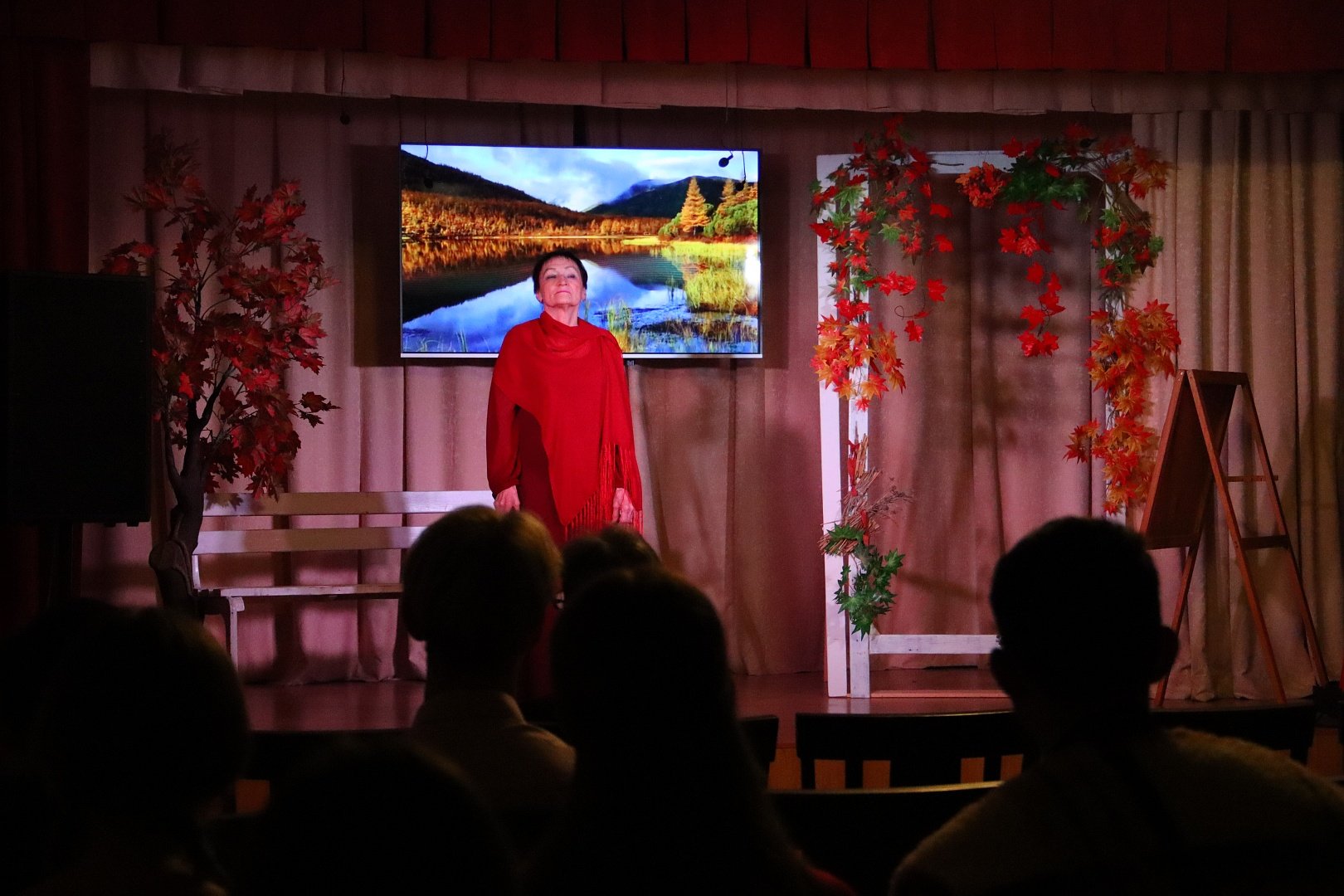 Украшением вечера стала видеопрезентация репродукций на тему осени известных художников – Исаака Левитана, Фёдора Васильева, Василия Поленова, Константина Коровина и Ильи Остроухова.