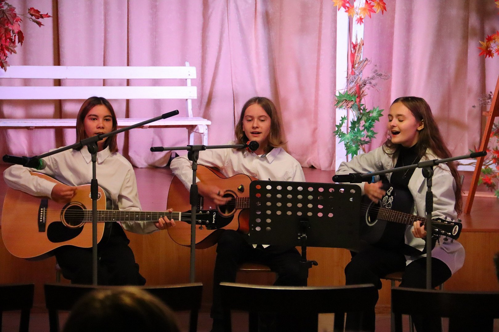 Снежана Гапон, Александр Хизяк и Дарья Исаева, под собственный аккомпанемент на гитарах, исполнили песню «Что такое осень».