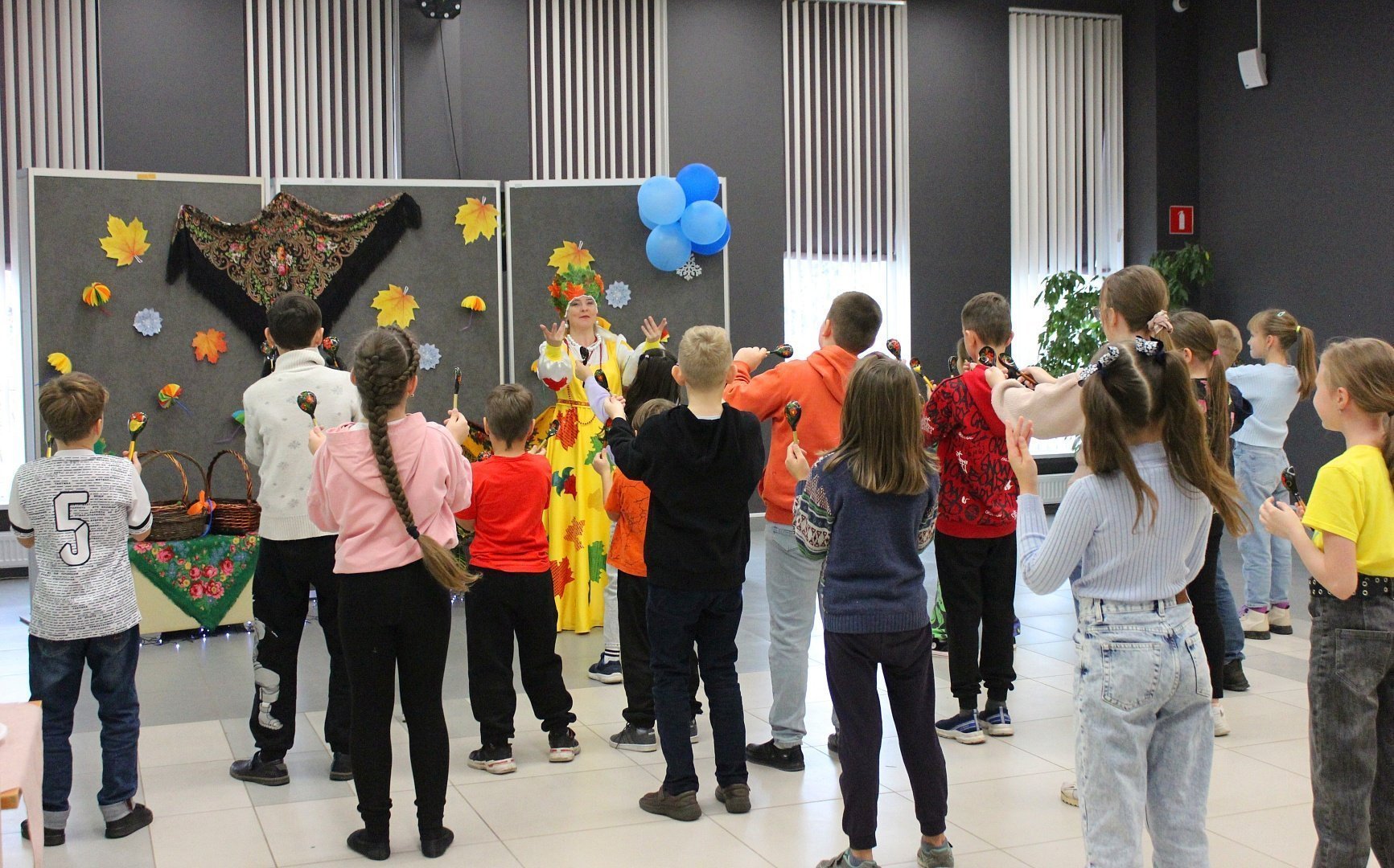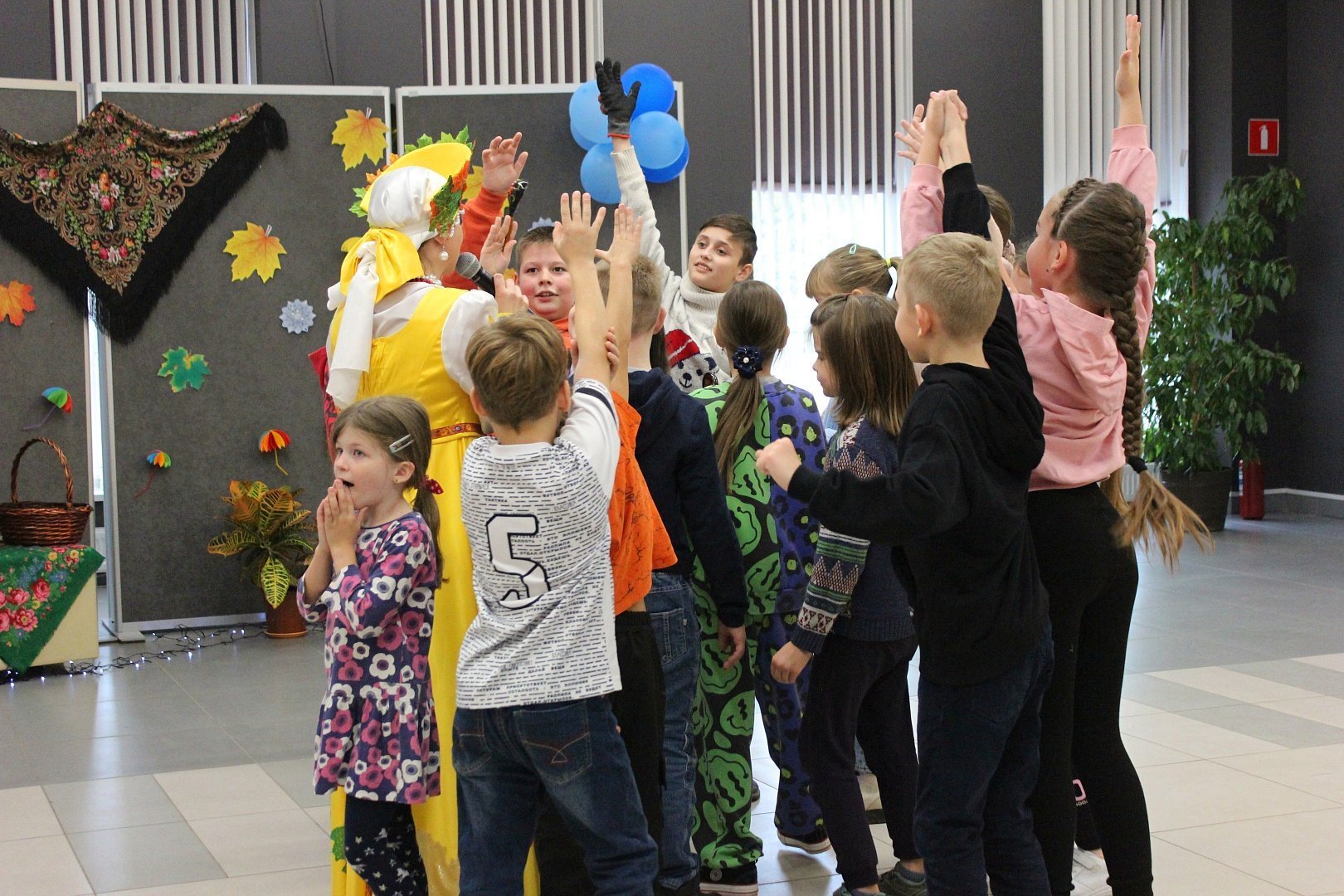 Ведущая мероприятия Царица осень познакомила пришедших гостей с историей праздника, народными традициями празднования Покрова Дня, обрядами, пословицами и поверьями. Ребята приняли участие в весёлых конкурсах, русских народных играх, отгадали загадки и викторины.
